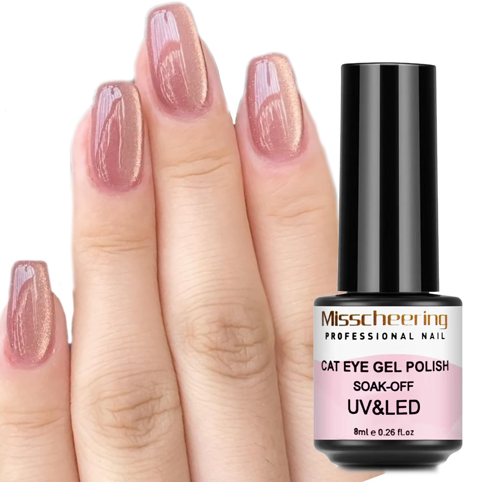 How to apply: 1.Before applying, make sure your nails are completely dry, clean and oil-free. Trim the surface of nails, clean dead skin, clean and dry nails 2.Apply base coat thinly and cure. (Not included in the package) 3. Apply one coat of black nail polish (preferably two coats) and cure. (UV lamp 120 seconds, LED lamp 30 seconds) 4. Shake the colour application bottle vigorously and apply one coat (preferably two coats) of Cat's Eye Gel Nail Polish and do not cure. 5. Use the magnetic stick to press the nail tightly to make the pattern you want, then cure. 6.Apply top coat and cure. Tips: 1. if you don't want your nails to be too thick, a thin coat is key. 2.Apply the gel to the edges of each nail and then seal the gel horizontally with a brush to avoid chipping for a long-lasting manicure. 3.Our nail polish supports you to repeat the operation. If you don't get the desired shape, you can use the magnetic stick to sweep out all the light and repeat the operation several times. Product Specification: Quantity: 1pc Size: 7.20 × 2.40 × 2.40 cm Net content: 8 g/ml Buy now and get the ultimate shimmering and bright blue crystal cat eye manicure! SAFETY WARNING Products for external use only.?BEAUTIFUL GIFT?This cat eye gel nail polish is natural in colour and suitable for all skin tones, it only takes a few minutes to charm her with the shine of this nail polish. A unique gift for mothers, girlfriends and wives on Christmas, Halloween, Thanksgiving, birthdays, anniversaries or Valentine's Day. ?HEALTHY MATERIALS?Our cat eye nail polish is made of natural resin eco-friendly ingredients, low odour, non-toxic, won't harm your nails or body, and it has never been tested on animals, completely harmless. Please feel free to use it. ?HIGH SHINE?This pink glitter nail polish has a high shine and glitter effect for a lustrous and long-lasting nail colour. The gel nail polish must be cured and dried under UV/LED light with 60-120 seconds curing time for each step. Keep your nails looking beautiful for up to 28 days. ?MULTIPLE EFFECTS?This crystal cat glue nail polish has multiple effects, different techniques can get different dreamy cat eye effects, such as galactic hole effect, diagonal effect, holographic effect, etc., very shiny, charming and attractive. Amazing and full of fun!. ?JELLY CAT EYE GEL?This pink glitter cat eye gel nail polish is made of holographic pigments, which can change the colour according to the viewing angle, upgraded cat eye powder with high density and good gloss, the cat eye effect is as crystal clear as sparkling crystal!.