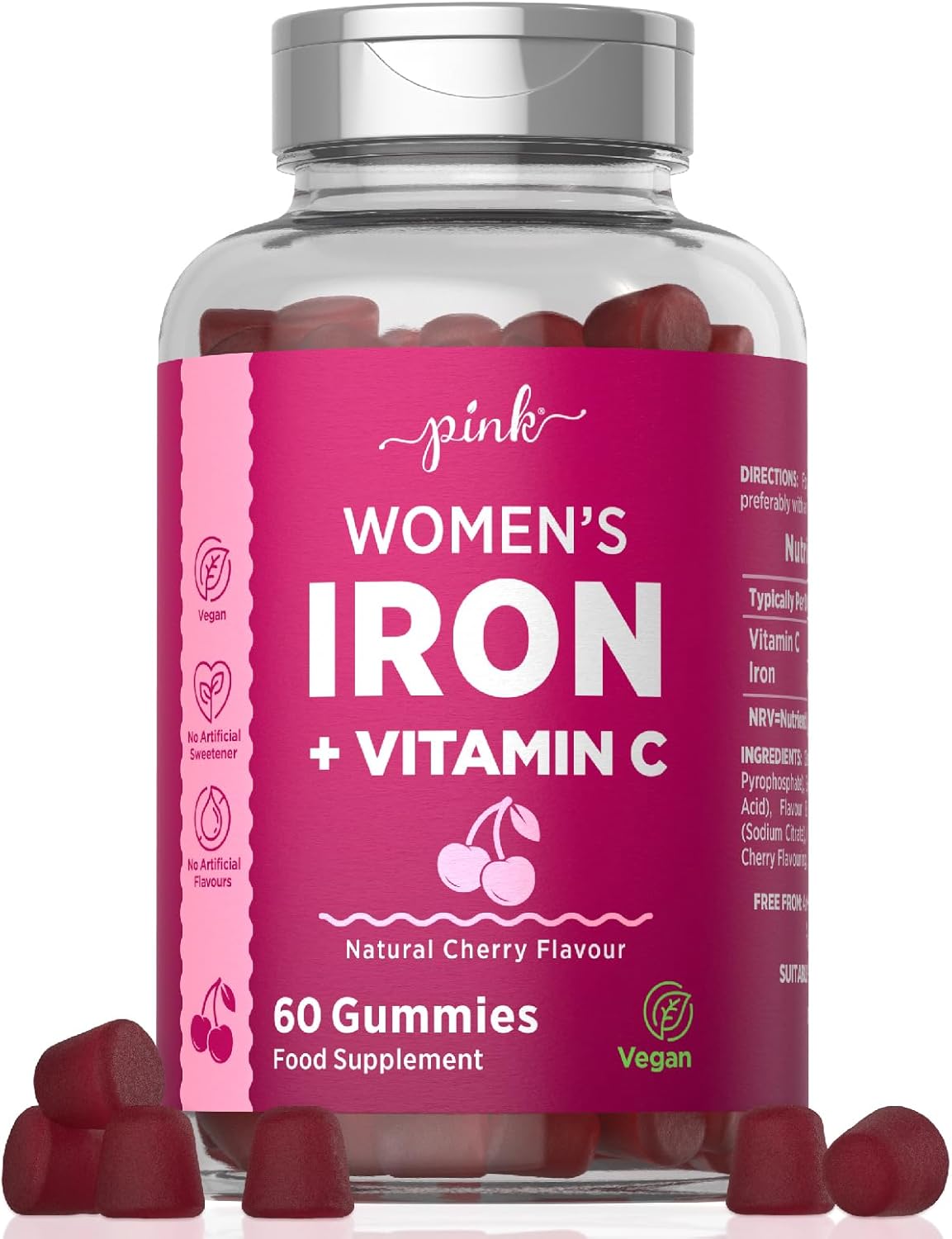 • PINK WOMEN'S IRON: Women are more likely than men to have an iron deficiency due to loss of blood during menstruation. Which is why we formulated our gummies with 100% NRV of Iron.