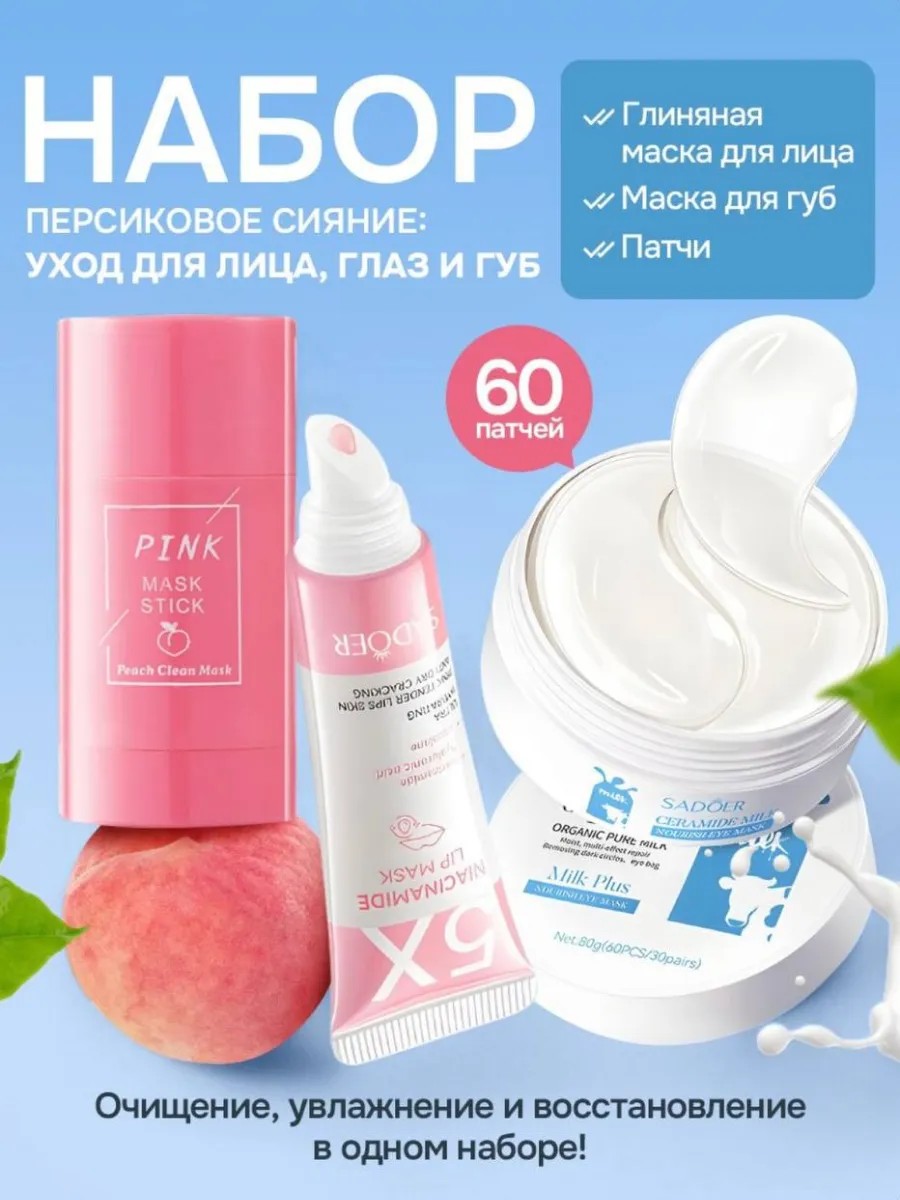 Идеальный набор уходовой косметики для профессионального ухода за кожей лица. В него входят: патчи для глаз — помогут освежить взгляд и уменьшить отёчность, маска для губ — увлажняет и питает, глиняная маска — подходит для глубокого очищения и улучшения состояния кожи. В составе используются натуральные ингредиенты, которые бережно ухаживают. Наш товар помогает решить несколько задач одновременно: уход за кожей вокруг глаз, увлажнение губ и очищение лица. Продукты просты в применении и не требуют специальных навыков. Они станут прекрасным подарком для себя и друзей, которые заботятся о красоте и здоровье своей кожи. Подарите себе или своим близким возможность насладиться нашими продуктами!