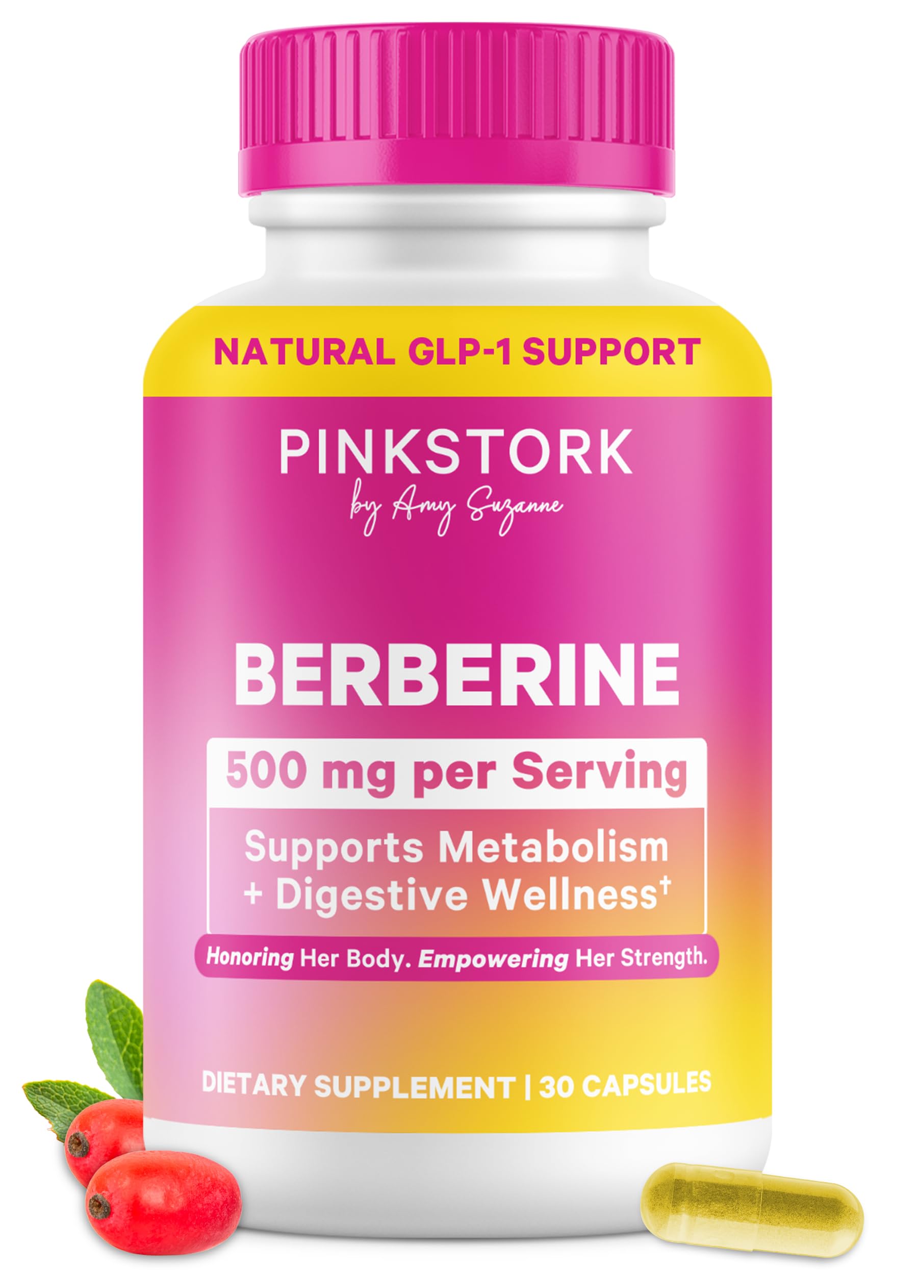 Pink Stork Berberine 500mg - Nature's GLP-1 Supplement - Daily AMPK Metabolic Activator - 500-1000 mg Metabolism + Gut Health for Women | Third-Party Tested | Vegan | Non-GMO| 30 Capsules