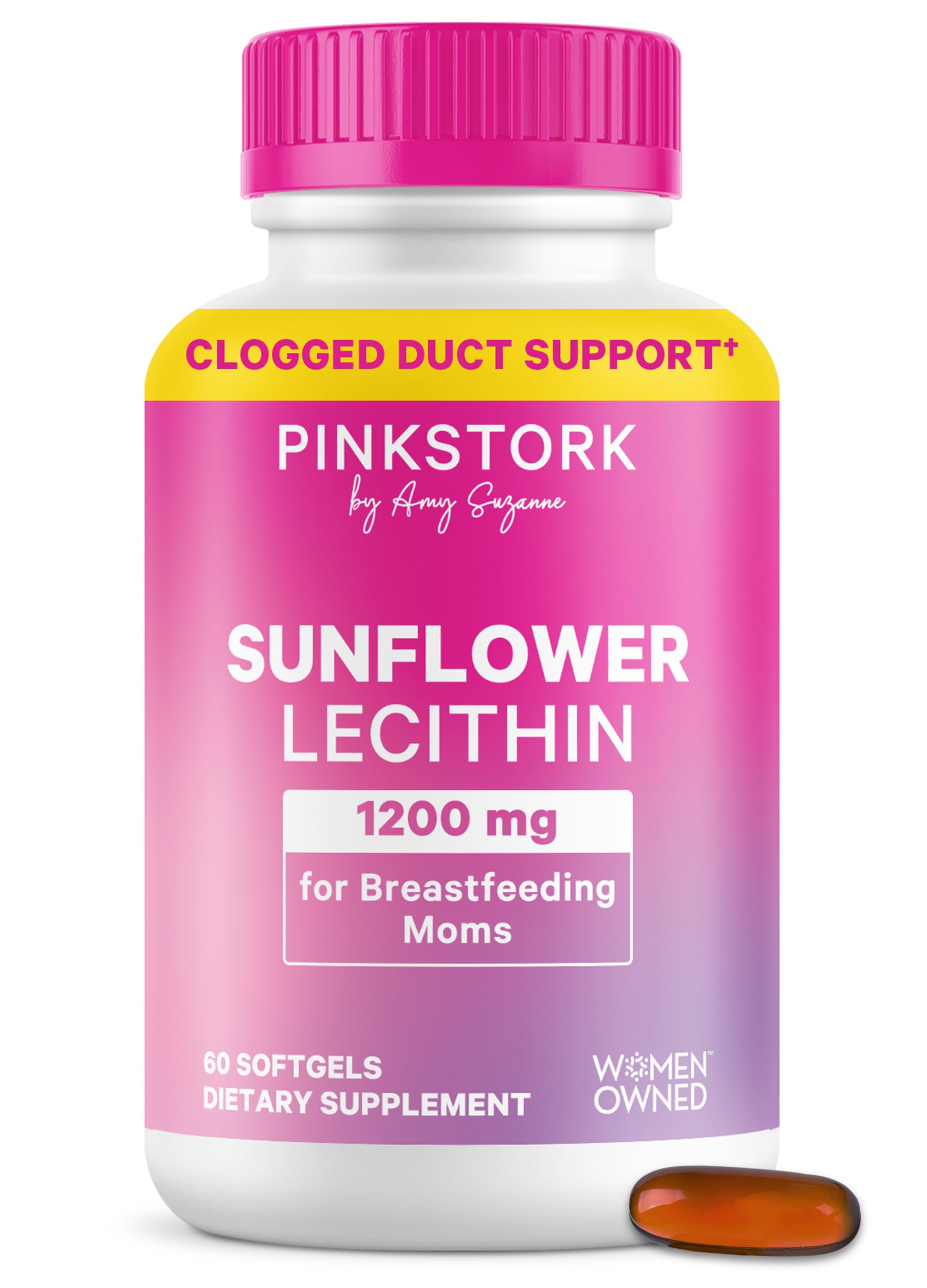 Pink Stork Sunflower Lecithin Supplement - 1200 mg for Clogged Milk Ducts - Breastfeeding Essentials for Postpartum Moms - Supports Breast Milk Flow - 60 Softgels