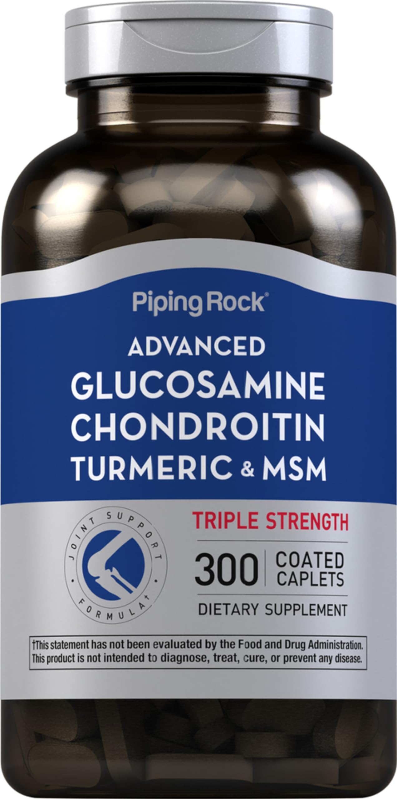 Piping Rock Glucosamine Chondroitin MSM Turmeric | 300 Caplets | Advanced Triple Strength Supplement | Non-GMO & Gluten Free