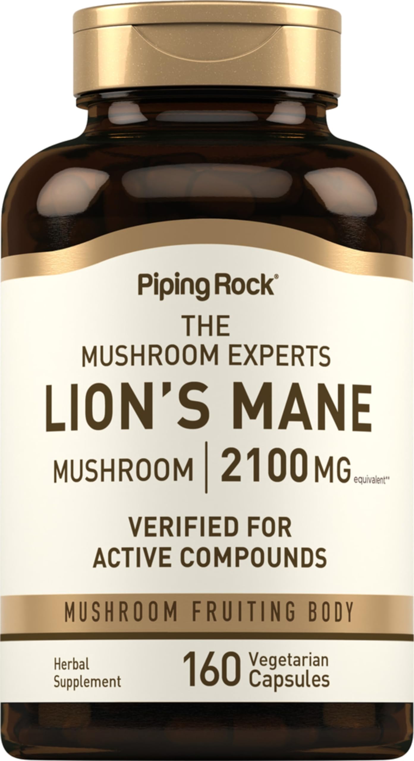 Piping Rock Lions Mane Mushroom Supplement Capsules | 2100mg | 160 Pills | Extract for Women and Men | Vegetarian Non GMO & Gluten Free