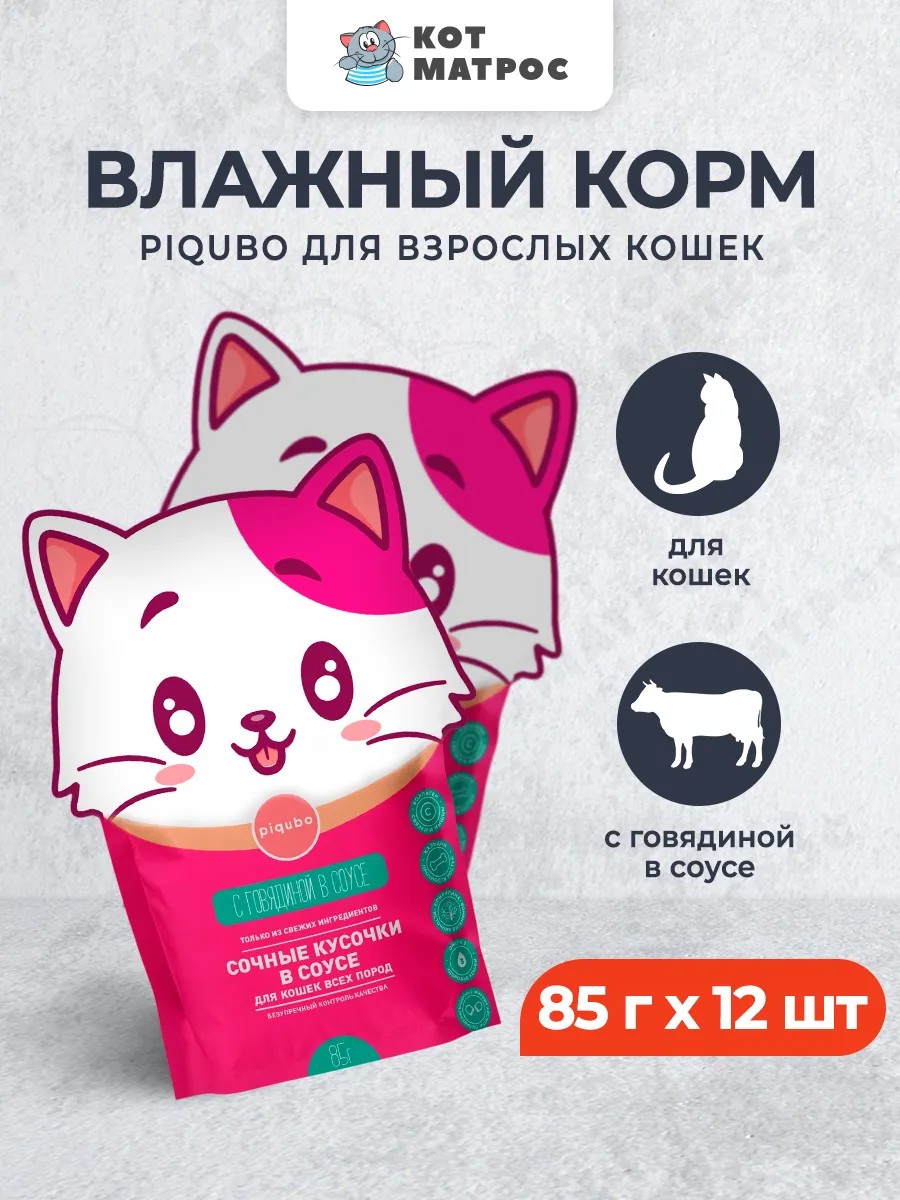 | Полное наименование товара | Piqubo влажный корм для взрослых кошек с говядиной в соусе - 85 г х 12 шт |