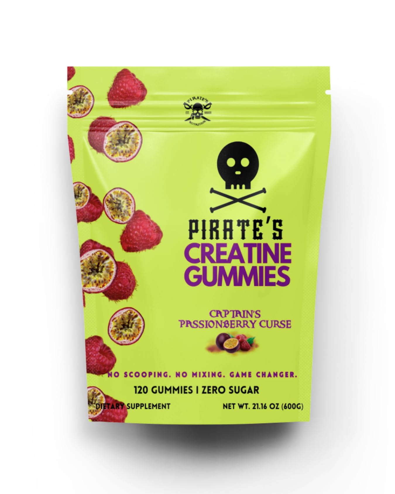 Pirate's Nutrition Creatine Gummies Zero Sugar Captain's PassionBerry Curse 120 Count Passion Fruit and Raspberry Flavor 5g Creatine Monohydrate Vegan Non-GMO Gluten Free
