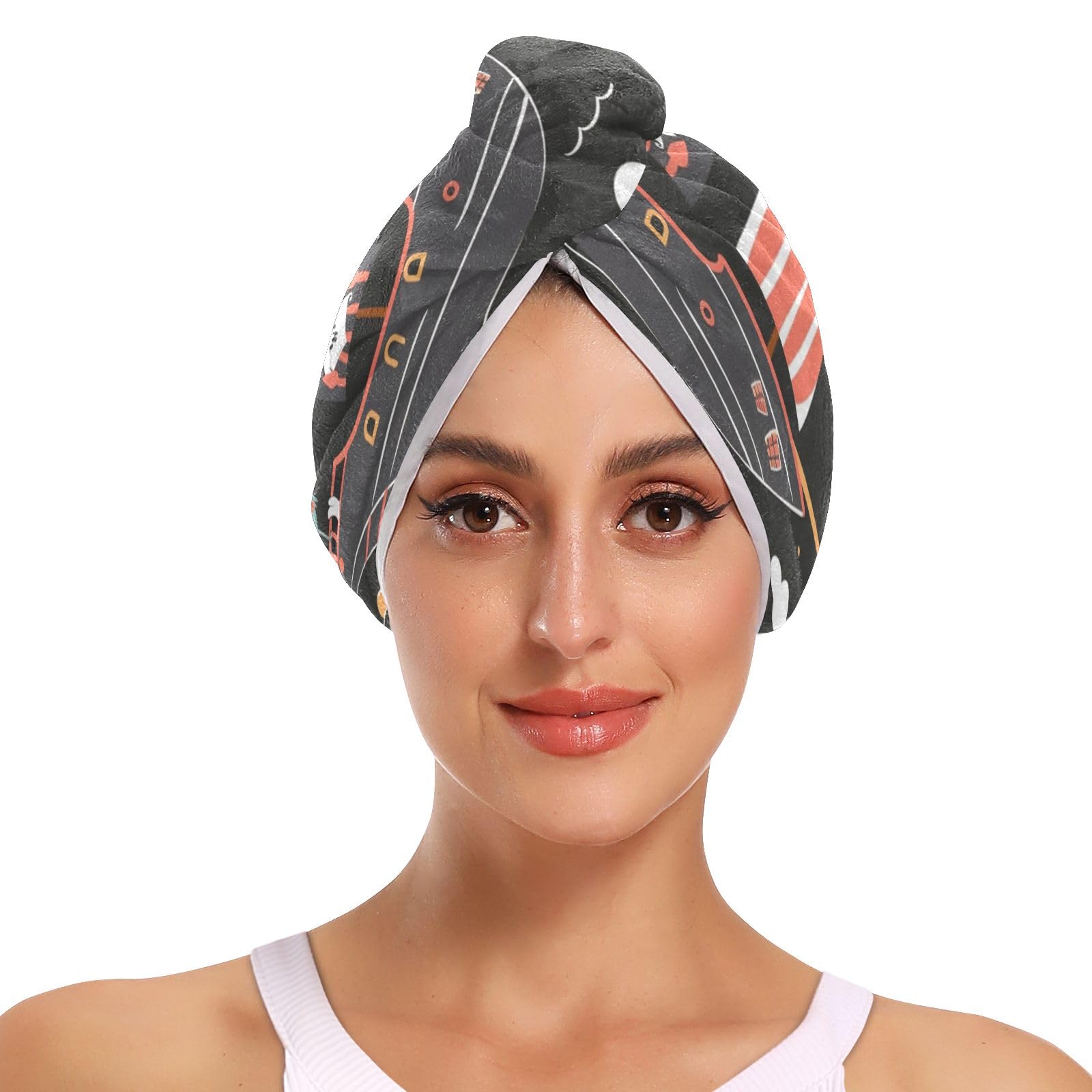 Pirate Ship3 Hair Towel 2 Pack Super Absorbent Hair Drying Towel Quick Dry Hair Turbans Head Towel with Button Twisty Wrap for Women Girls
