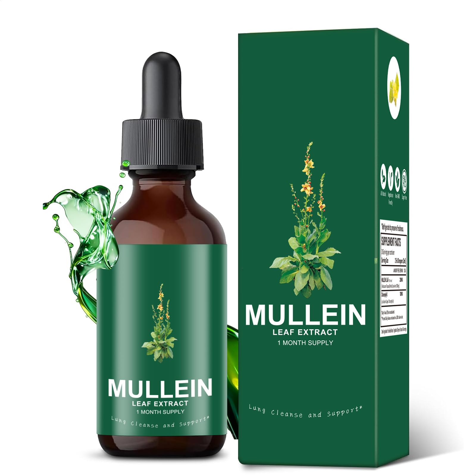 Mullein Drops for Lungs, Mullein Chlorophyll Lung Drops, Mullein Leaf Extract with Chlorophyll,Mullein Leaf Extract for Lung Cleanse and Respiratory Support - 1 PC