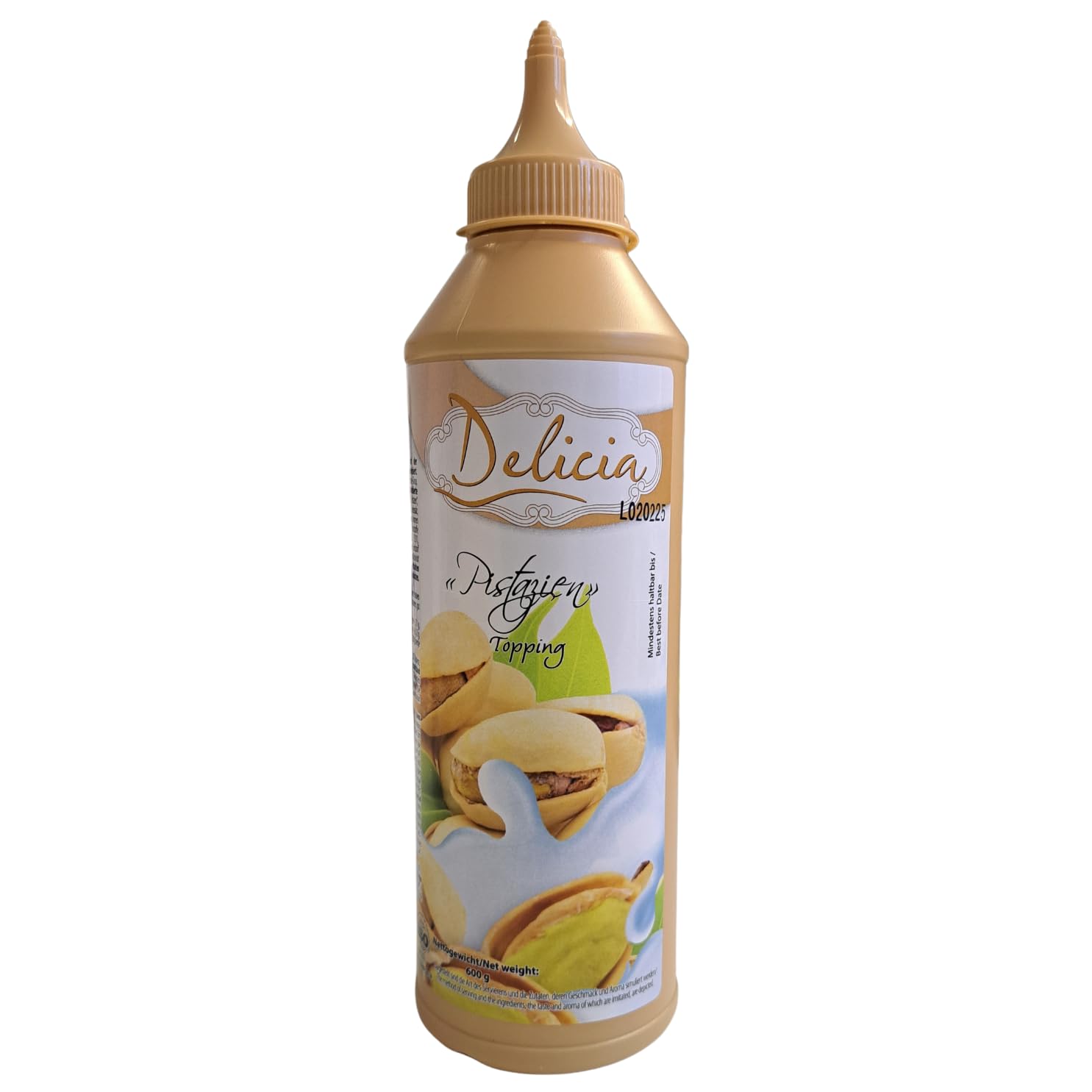 Delicia toppings: The taste revolution for your dishes and drinks!Discover the versatile world of Delicia toppings, an irresistible taste and filler that raises your culinary creations to a new level.Whether soft ice cream, pancakes, coffee, milkshakes or desserts - with our topping, every dish is perfected and emphasized.The special texture of our toppings makes you the ideal tool for decoration and presentation of dishes.Give your dishes a touch of elegance and individuality.Design fruit salads according to your ideas and expand the flavors of your cocktails.Discover how our toppings can make the aroma of your coffee even more interesting.Our Delicia toppings give ice cream, pancakes, cakes and pastries not only a unique taste, but also an appealing look.Create creamy masterpieces with incomparable taste and give your dishes an exclusive note through artistic patterns.Delicia toppings are the secret weapon for chefs and baristas who want to give their food and drinks that certain extra.Express your creativity in the kitchen and surprise your guests with unforgettable taste experiences.Discover the world of Delicia toppings and transform ordinary dishes into culinary masterpieces.Get a piece of exclusivity on your plate today! Ingredients / ingredients Sugar, drinking water, glucose fructose syrup, whey powder, modified cornstarch, flavored paste "pistachios" (0.76 %), aromatic basis "pistachios", refined plant fat (not hardened palm oil), dining salt, carrage stabilizer, acidity icing lactic acid,Flavors ("Pistachios!," Almonds "," Hazelnuts "), dyes (copper complexes of the chlorophylle, E102, E131), conservation substance potassium sorbate. practical packaging: The recoverable bottle ensures that the dessert sauce remains fresh and can be easily dosed. Ideal for use at home or in the restaurant.Enough sauce for numerous dessert creations and can always enjoy your favorite desserts.High -quality ingredients: Our desserts sauce is made from carefully selected, high -quality ingredients to offer you a first -class taste experience. Delicia Toppings: Die Geschmacksrevolution für Ihre Speisen und Getränke! Entdecken Sie die vielseitige Welt der Delicia Toppings, einem unwiderstehlichen Geschmackszusatz und Füllstoff, der Ihre kulinarischen Kreationen auf ein neues Niveau hebt. Ob Softeis, Pfannkuchen, Kaffee, Milchshakes oder Desserts - mit unseren Toppings wird jedes Gericht perfektioniert und herausgehoben. Die besondere Textur unserer Toppings macht sie zum idealen Werkzeug für die Dekoration und Präsentation von Speisen. Verleihen Sie Ihren Gerichten einen Hauch von Eleganz und Individualität. Gestalten Sie Obstsalate nach Ihren Vorstellungen und erweitern Sie die Geschmackspalette Ihrer Cocktails. Entdecken Sie, wie unsere Toppings das Aroma Ihres Kaffees noch interessanter machen können. Unsere Delicia Toppings verleihen Eiscreme, Pfannkuchen, Kuchen und Gebäck nicht nur einen einzigartigen Geschmack, sondern auch ein ansprechendes Aussehen. Kreieren Sie cremige Meisterwerke mit unvergleichlichem Geschmack und verleihen Sie Ihren Gerichten durch kunstvolle Muster eine exklusive Note. Delicia Toppings sind die Geheimwaffe für Köche und Baristas, die ihren Speisen und Getränken das gewisse Extra verleihen möchten. Bringen Sie Ihre Kreativität in der Küche zum Ausdruck und überraschen Sie Ihre Gäste mit unvergesslichen Geschmackserlebnissen. Entdecken Sie die Welt der Delicia Toppings und verwandeln Sie gewöhnliche Gerichte in kulinarische Meisterwerke. Holen Sie sich noch heute ein Stück Exklusivität auf Ihren Teller! INHALTSSTOFFE / ZUTATEN Zucker, Trinkwasser, Glukose-Fruktose-Sirup, Molkenpulver, modifizierte Maisstärke, aromatisierte Paste "Pistazien" (0,76 %), aromatische Basis "Pistazien", raffiniertes Pflanzenfett (nicht gehärtetes Palmöl), Speisesalz, Carrageen-Stabilisator, Säureregulator Milchsäure, Aromen ("Pistazien!, "Mandeln", "Haselnüsse"), Farbstoffe (Kupferkomplexe der Chlorophylle, E102, E131), Konservierungsstoff Kaliumsorbat.Praktische Verpackung: Die wiederverschließbare Flasche sorgt dafür, dass die Dessertsoße frisch bleibt und sich bequem dosieren lässt. Ideal für den Gebrauch zu Hause oder im Restaurant. Verschiedene Geschmacksrichtungen: Wählen Sie aus einer Vielzahl von Geschmacksrichtungen wie Schokolade, Karamell, Vanille oder Fruchtsoßen, um Ihren persönlichen Favoriten zu finden. Großzügige 600g-Flasche: Mit unserer großzügigen 600g-Flasche haben Sie genug Soße für zahlreiche Dessertkreationen und können Ihre Lieblingsdesserts immer wieder genießen. Vielseitig einsetzbar: Verwenden Sie unsere Dessertsoße als Topping für Eiscreme, Kuchen, Waffeln oder andere Desserts, um Ihren Lieblingsspeisen eine köstliche Note zu verleihen. Hochwertige Zutaten: Unsere Dessertsoße wird aus sorgfältig ausgewählten, hochwertigen Zutaten hergestellt, um Ihnen ein erstklassiges Geschmackserlebnis zu bieten.