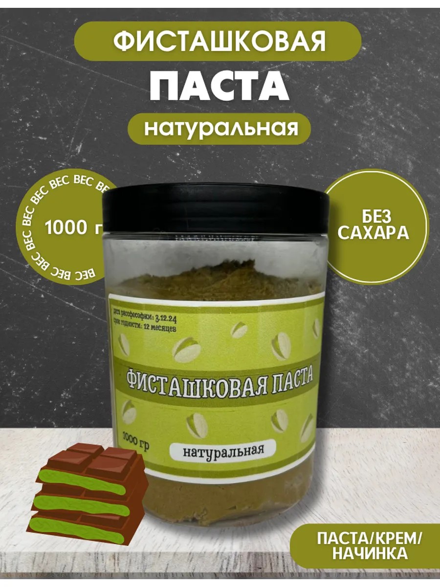 Фисташковая паста натуральная не содержит вредных добавок и идеально подходит для похудения, она также может использоваться для выпечки, а главное, из нее делают дубайский шоколад. Десертная фисташковая вкусняшка представляет собой вкусный и полезный продукт, эта кондитерская паста имеет диетический состав, она без сахара и консервантов, поэтому понравится тем, кто придерживается здорового питания. Ореховая паста имеет кремовую консистенцию, этот оригинал расфасован в банки по 1000 г и является чудесным сырьем для шоколада Дубай (Choco Dubai). Для изготовления этой продукции были использованы отборные жареные фисташки, из мягкой крем-пасты получаются идеальные шоколадки с начинкой.