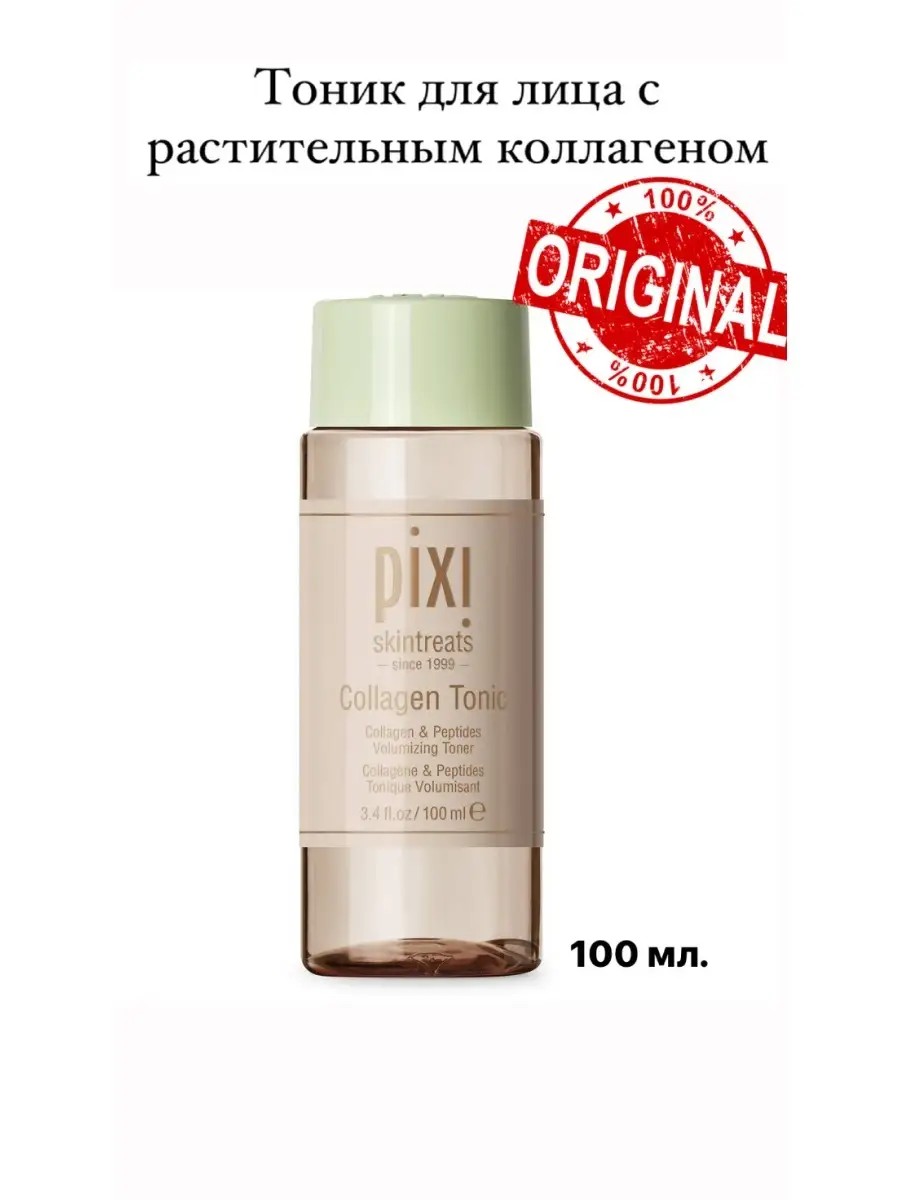 Тоник Pixi Collagen Tonic 100мл. помогает сгладить мелкие морщинки и улучшить неровную текстуру кожи. Обогащенный коллагеном акации тоник омолаживает кожу, делает ее более эластичной, придают ей молодой цвет, а также помогает уменьшить выраженность мелких и глубоких морщин. Пептиды способствуют выравниванию текстуры и тона кожи, а кокосовая вода насыщает кожу влагой и удерживает ее в ней. И в заключение, морская соль восстанавливает природный уровень минералов в коже, придавая ей ухоженный вид.Способствует увеличению объема, упругости и повышению эластичности кожи.- Содержит растительные компоненты, которые обладают антиоксидантными свойствами и придают коже молодой вид.- Формула, богатая минералами, восстанавливает истощенную кожу.- Безалкогольное- Без парабенов- Не тестировалось на животных.- Подходит для всех типов кожи100% оригинал, можно проверить по штрих коду.