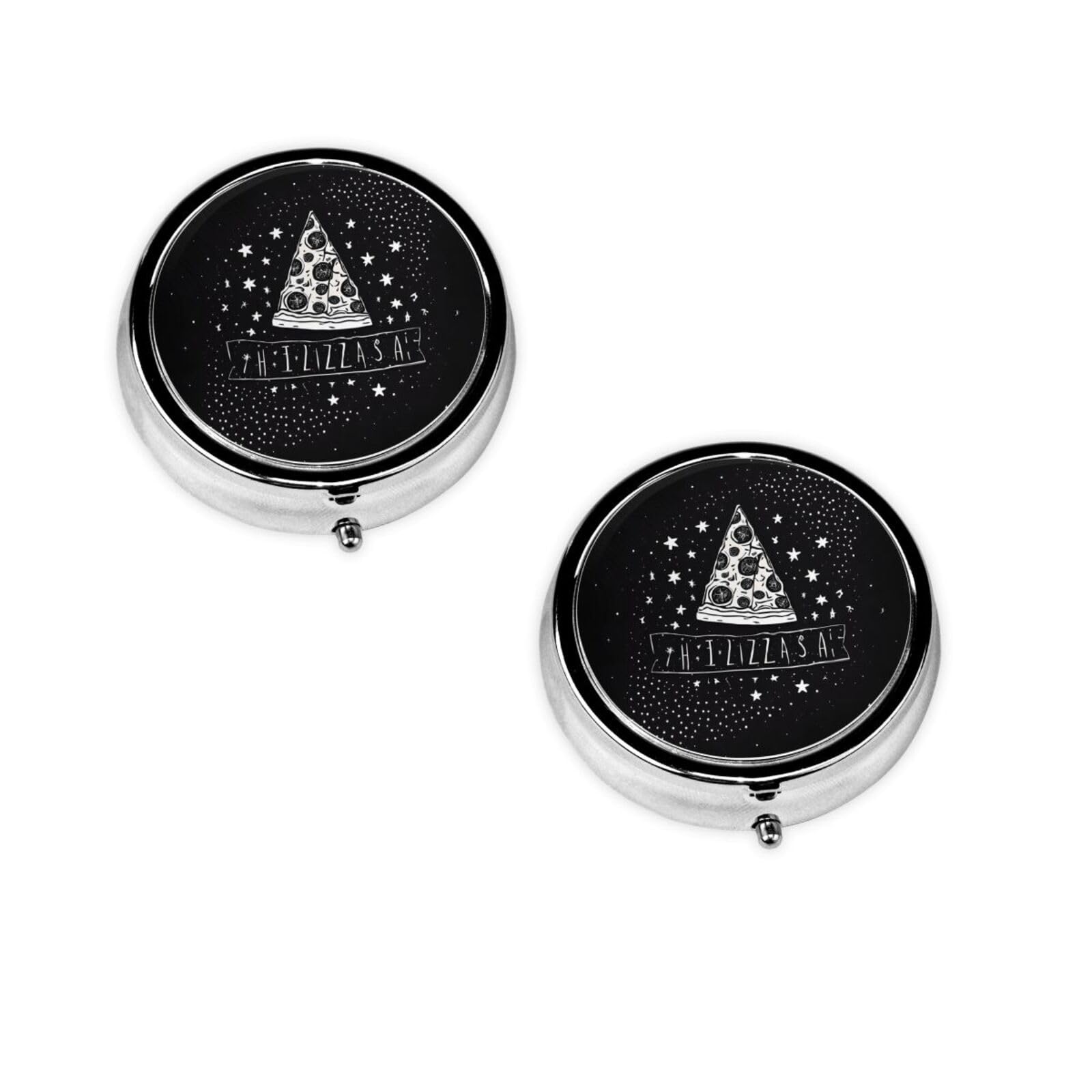 (Pizza Constellation) Round Pill Box 3 Compartment Pill Box Mini Decorative Pocket Purse Portable Travel Medicine Tablet Vitamin Holder Organizer Pill Case