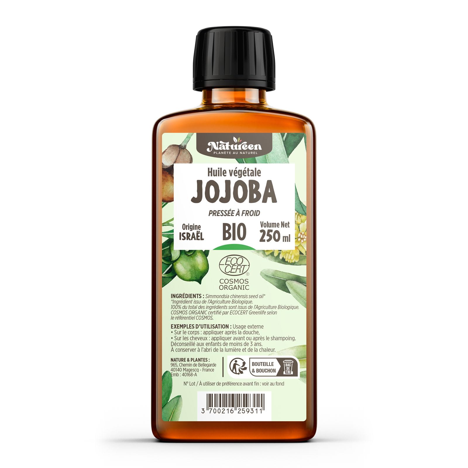 Huile de JOJOBA Bio 250 ml - Cosmos Organic - Planète au Naturel - Pure, Naturelle et Pressée à froid - Cheveux, Corps, Peau