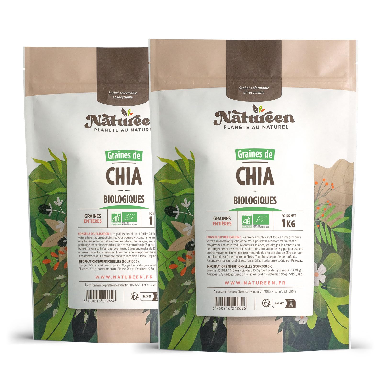 Plan te au Naturel Organic Chia Seeds 2 kg - 2 sachets of 1 kg