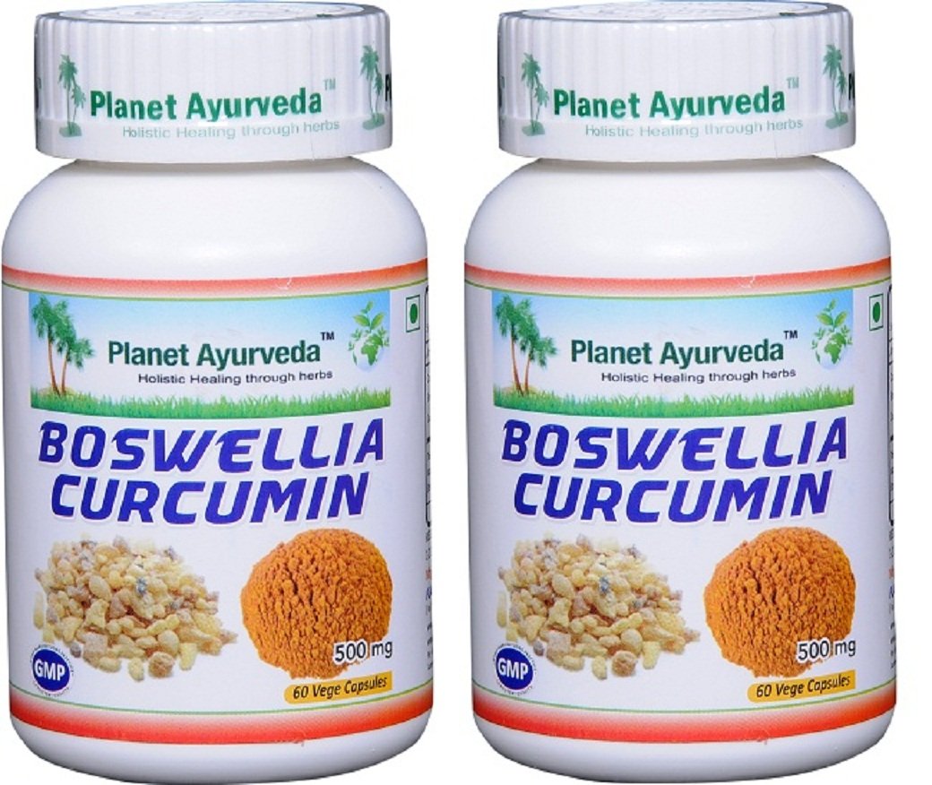 Planet Ayurveda Boswellia Curcumin, 500mg Veg Capsules - 2 Bottles