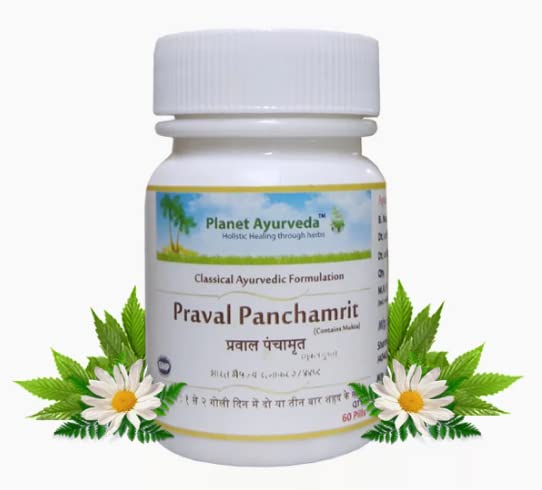 Planet Ayurveda Praval Panchamrit | The Ayurvedic Treatment of Bloating| Natural Digestive System Support | Maintain Healthy Urinary System | 60 Veg Capsules Each, Pack of 1