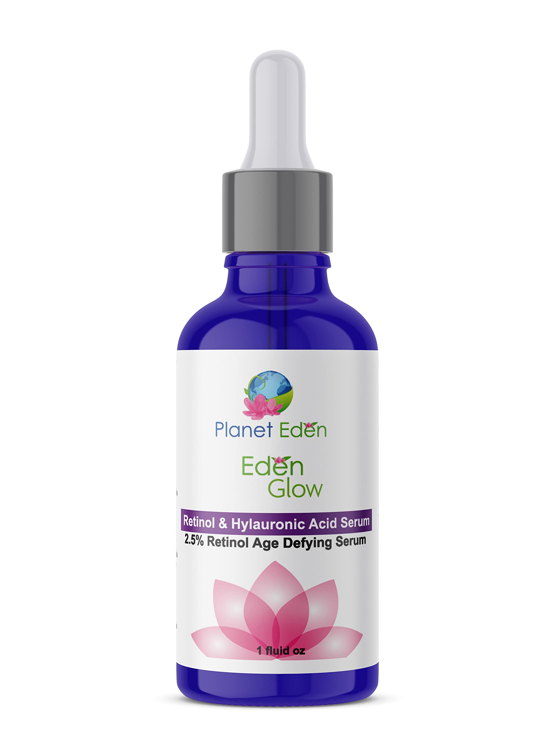 Non irritating and potent 2.5 Retinol serum delivers the highest amount of Retinol without a prescription. Botanical Hyaluronic Acid hydrates thirsty,dry skin and renews skin to a plump and soften appearance. Planet Eden's 2.5 Retinol serum contains 95 Organic ingredients and never has harsh alcohol! A powerful cocktail of antioxidants combine with Vitamin A to diminish the look of fine lines, wrinkles, and premature aging due to sun exposure.