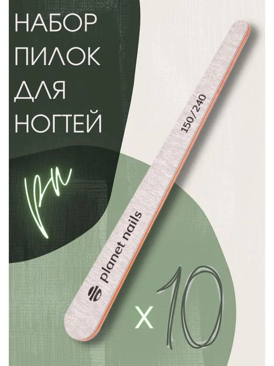 Planet Nails Пилка для ногтей зауженная 150/240, 10 шт