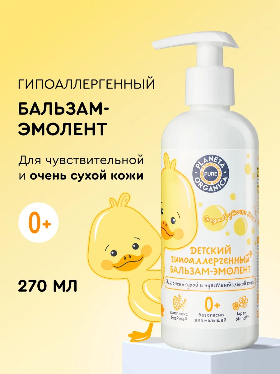 Детский бальзам-эмолент для очень сухой и чувствительной кожи 0+ Planeta Organica Pure Kids 270 мл обеспечивает интенсивное смягчение и восстановление липидного слоя. Гипоаллергенная ухаживающая формула на основе пребиотиков поддерживает баланс полезных для кожи микроорганизмов и укрепляет её естественные защитные функции. Крем-эмолент подходит для ежедневного ухода с первых дней жизни малыша.