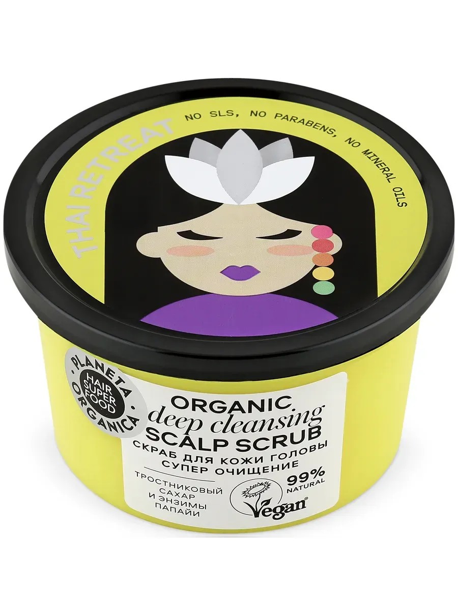 Скраб Planeta Organica Hair Super Food Organic Deep Cleaning Scalp Scrub для кожи головы, супер очищение, тростниковый сахар и энзимы папайи, 250 мл. HAIR SUPER FOOD Натуральные коктейли здоровья и красоты, основанные на самых полезных ингредиентах со всего мира. Настоящее тайское spa супер очищение для твоих волос. СКРАБ ДЛЯ КОЖИ ГОЛОВЫ СУПЕР ОЧИЩЕНИЕ - Улучшает дыхание клеток кожи головы - Обладает эффектом глубокого пилинга и обеспечивает природный детокс-эффект - Насыщает кожу кислородом и стимулирует рост здоровых волос Тростниковый сахар суперфуд для волос и природный эксфолиант, содержит натуральные полисахариды и калий. Бережно очищает, отшелушивает и увлажня ет кожу головы. Энзимы папайи обеспечивают глубокое очищение и обновление кожи головы, придавая ощущение свежести и комфорта. Состав:Sucrose (тростниковый сахар), Glycerin (расти-тельный глицерин), Sodium Chloride (соль), Sodium Cocoyl Isethionate (ПАВ на основе кокосового масла), Cocamidopropyl Betaine (натуральный ПАВ на основе кокосового масла), Cetearyl Alcohol (натуральный загуститель из кокосового масла), Organic Mangifera Indica Seed Oil (органи-ческое масло манго), Papain (энзимы папайи), Garcinia Mangostana Fruit Extract (экстракт мангостина), Zingiber Officinale Root Oil (эфирное масло имбиря), Organic Cananga Odorata Flower Oil (органическое эфирное масло иланг-иланга), Pogostemon Cabin Leaf Oil (эфирное масло пачули), Citrus Aurantifolia Peel Oil (эфирное масло лайма), Organic Mauritia Flexuosa Fruit Oil (органическое масло бурити). нанесите скраб на влажную кожу головы массажными движениями, смойте водой. Вымойте голову с использованием шампуня.