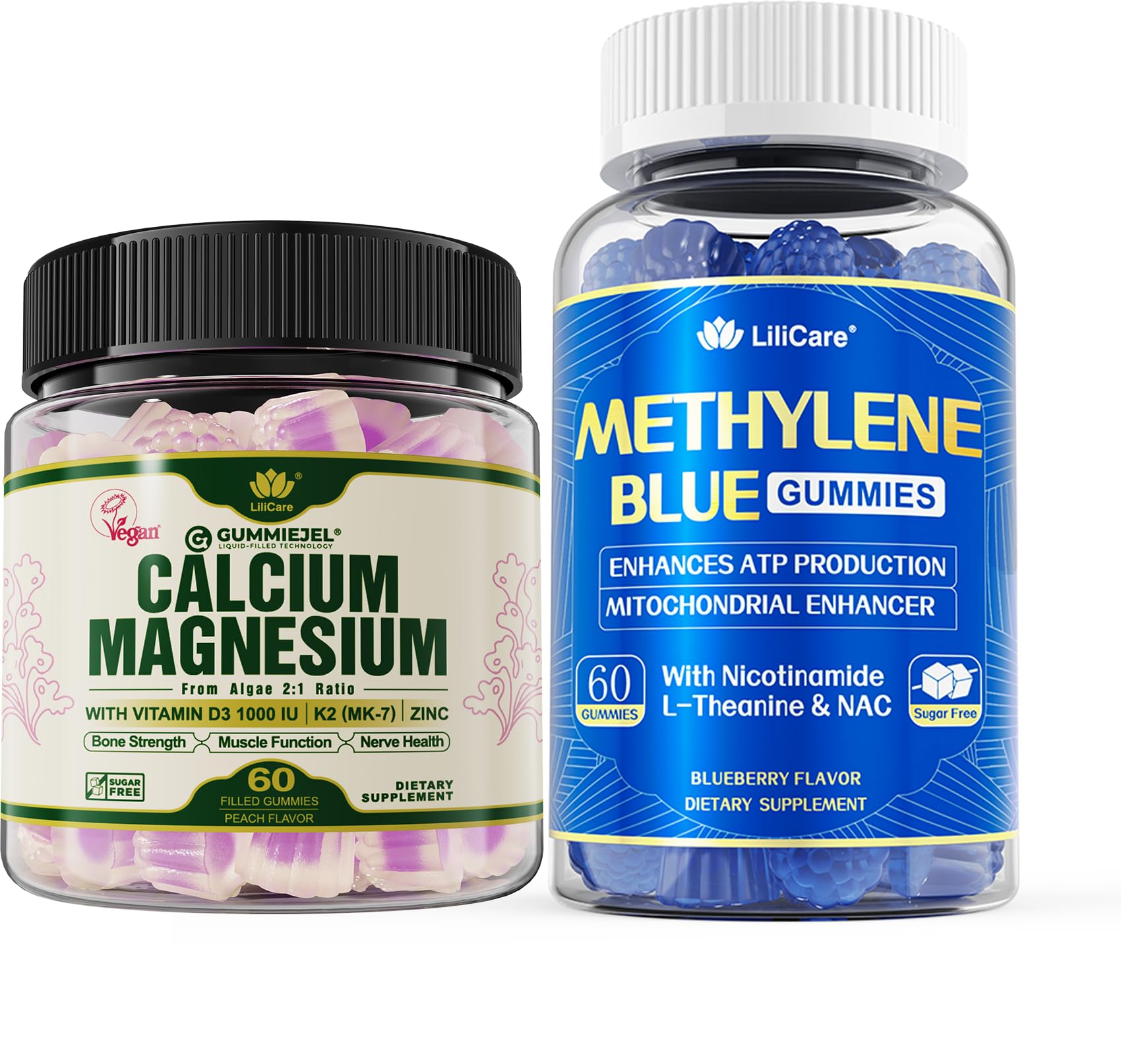 Plant Based Calcium Gummies 600mg + Methylene Blue Gummies for Human