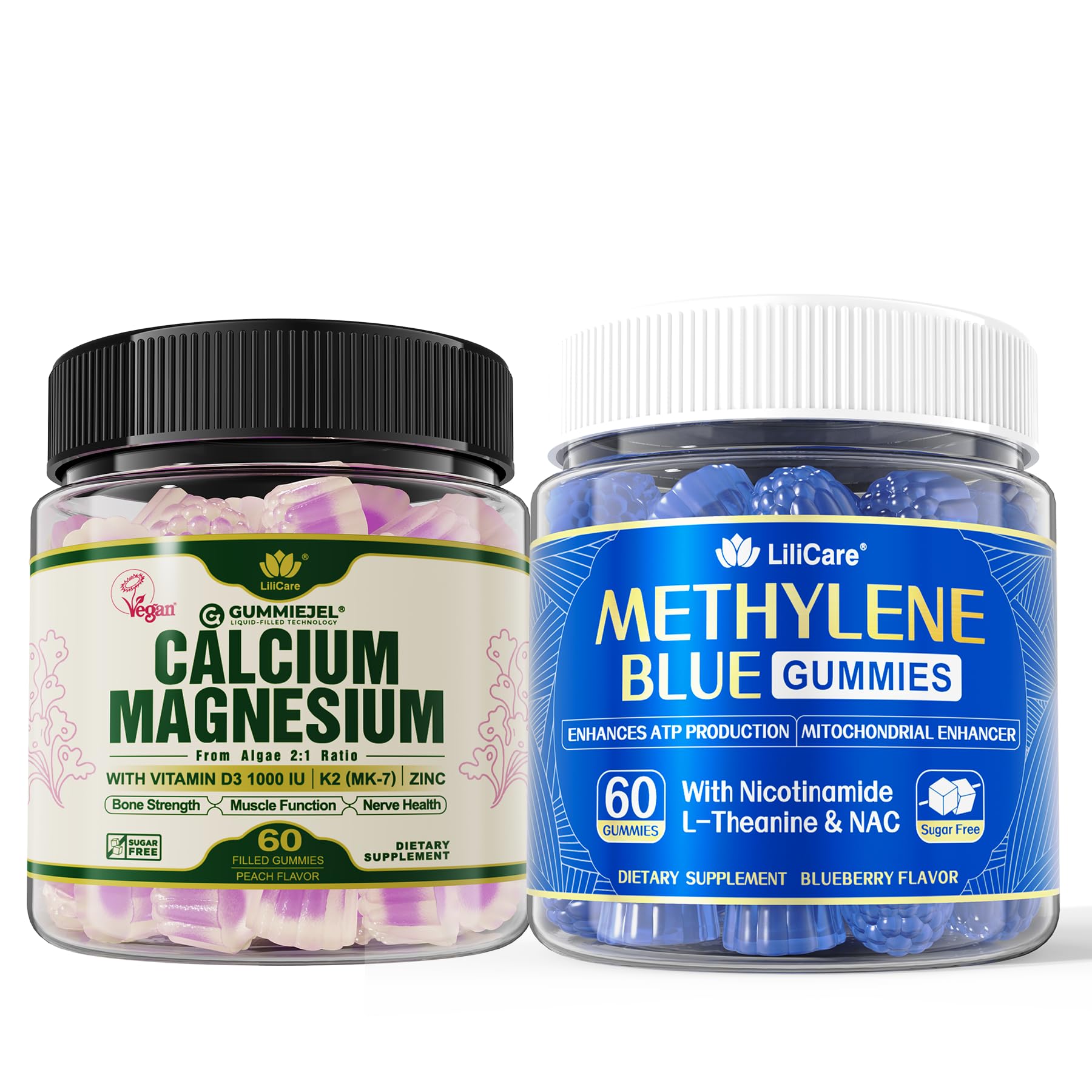 Plant Based Calcium Gummies 600mg + Methylene Blue Gummies for Humans