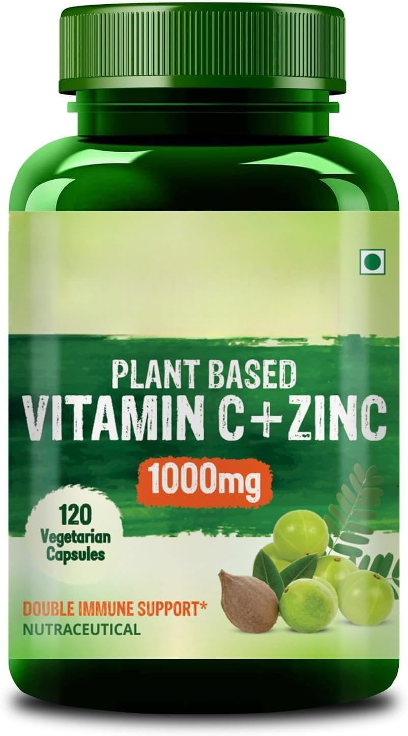 ENERGY BOOST: Vitamin C supports energy production, reducing fatigue and weakness, keeping you energised throughout the day. Vitamin C with Zinc Capsules are made up of plant-based ingredients like Green Amla, Guava, Haitaki, Bibhitaki that are powerhouse of antioxidants. ENHANCED ABSORPTION: The Capsules interact with the other essential vitamins and minerals in the body like iron, which is crucial for proper growth and development. Vitamin C boosts the process of collagen synthesis that plays a critical role in connective tissues like those found in our hair, skin, and nails. It develops healthy and younger-looking skin. 2X IMMUNITY BOOSTER: Best known for having a positive effect on the immune system, these Capsules, with an amazing combination of Vitamin C with Zinc. Made with high-quality ingredients and manufactured in a facility following strict quality standards.
