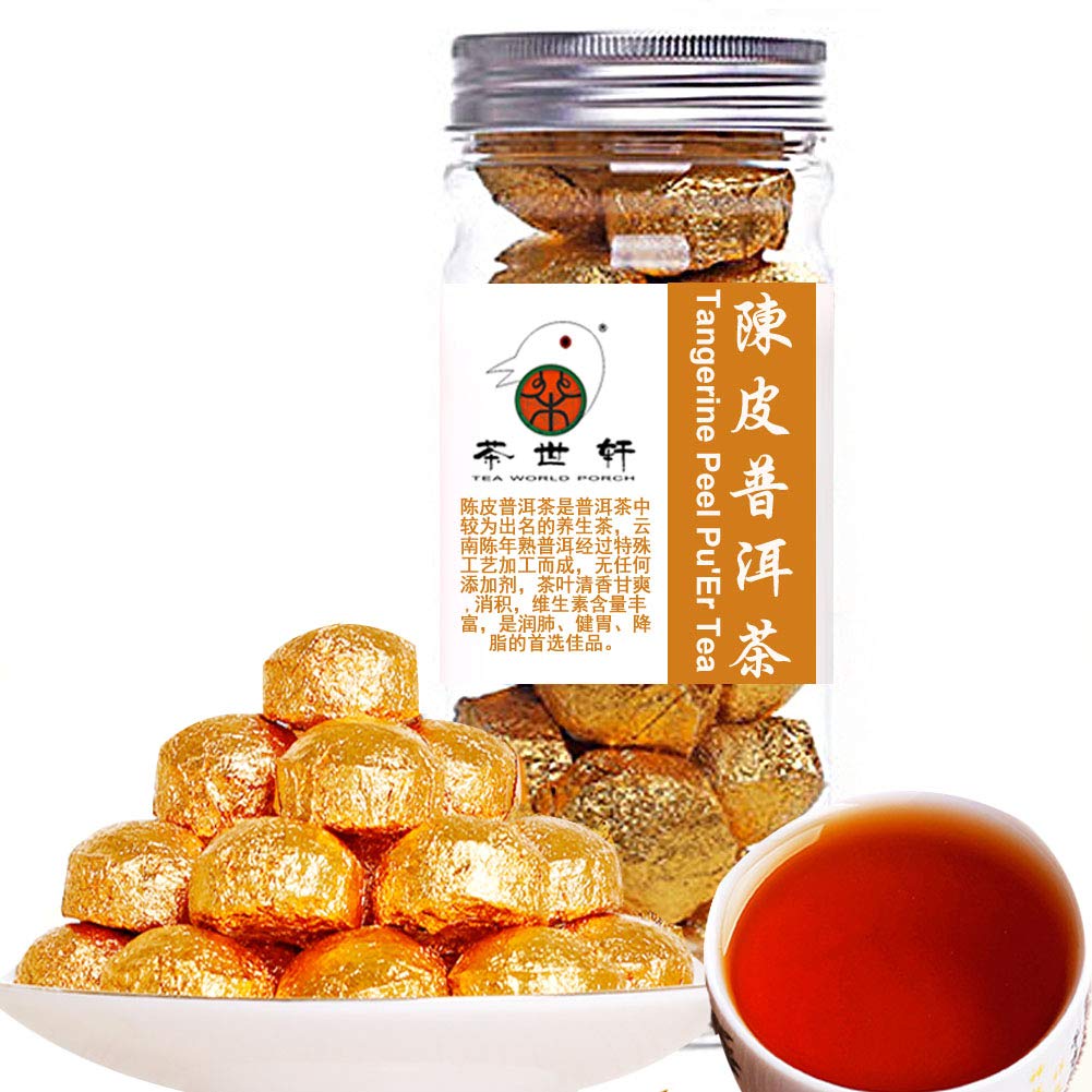 ?Contains vitamin C, vitamin E, tea polyphenols, amino acids, and trace elements, etc. It has antioxidant properties and slows the aging process. ?Expectoration: The volatile oil of orange peel (the main component is limonene) has an expectorant effect. ?Beauty: Pu'er tea regulates metabolism, promotes blood circulation, naturally balances bodily functions, and thus has a cosmetic effect. It is called "Beauty Tea" overseas. ?Pu'er tea itself contains fat-breaking lipase. This lipase has a beneficial effect on fat breakdown. For many people with small stomachs, it can play a role in the digestion and consumption of fats. In addition, Pu'er tea can also protect the stomach. ?Pu'er tea soup is rich in orange and yellow, with a strong and long-lasting aroma. It has a unique aroma, a rich taste, and long-lasting resistance to foaming. Pu'er tea has numerous benefits, including lowering blood fat, weight loss, aiding digestion, warming the stomach, increg fluid production, quenching thirst, promoting sobriety, and detoxifying the body.