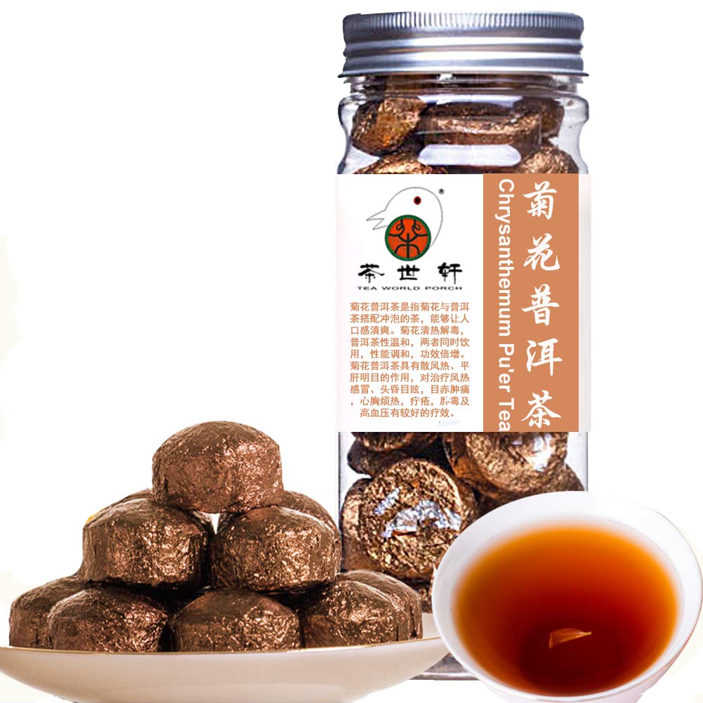 Plant Gift Riz au chrysanthème séché Pu-Er Tuocha – Thé chinois mûr bio à partir de 2016, soutien à la perte de poids – 150 g