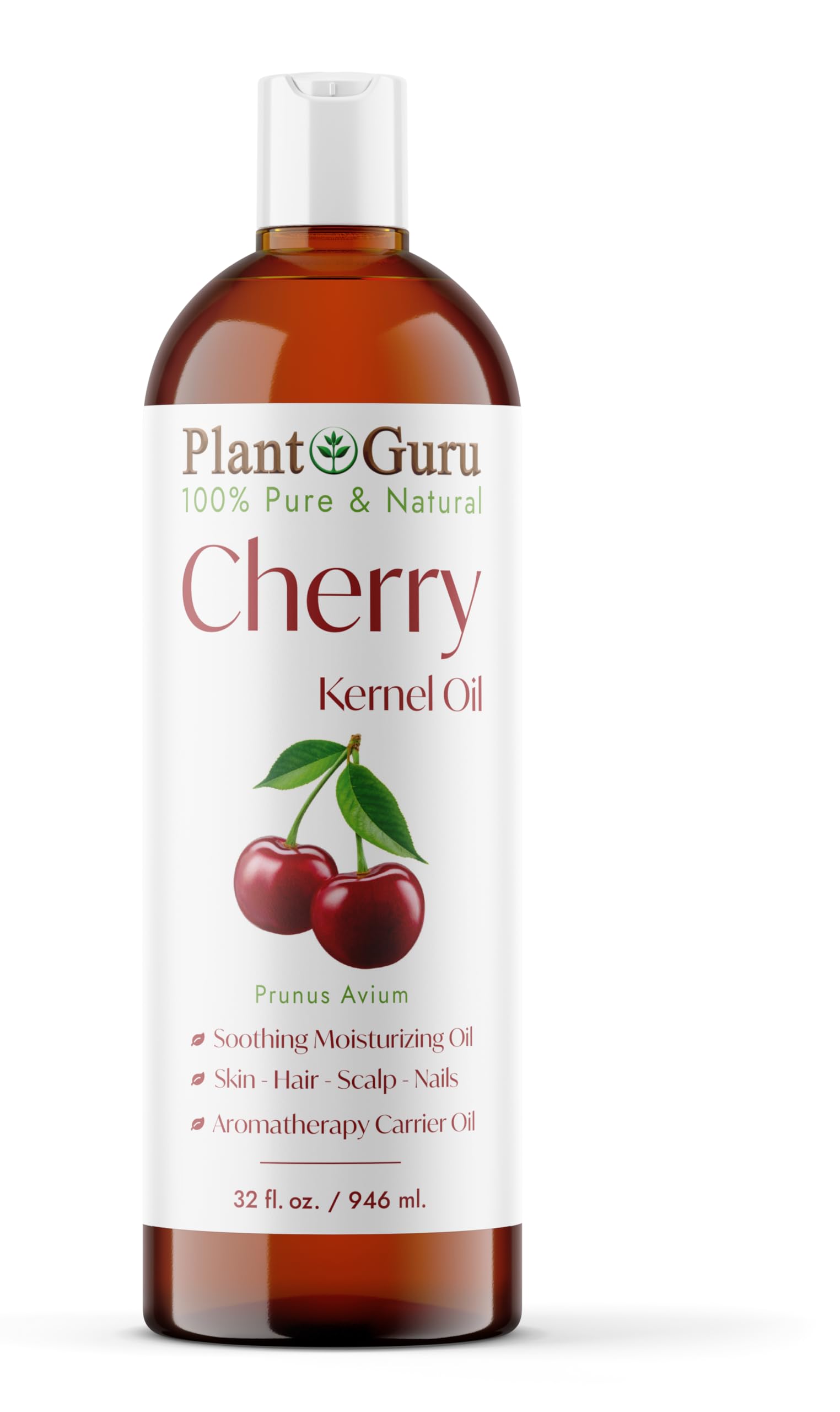 Plant Guru Cherry Kernel Oil 32 fl. oz. Cold Pressed 100% Pure & Natural Carrier Skin Face Body & Hair Growth Moisturizer. Great for DIY Creams Lotions and Lip Balms.