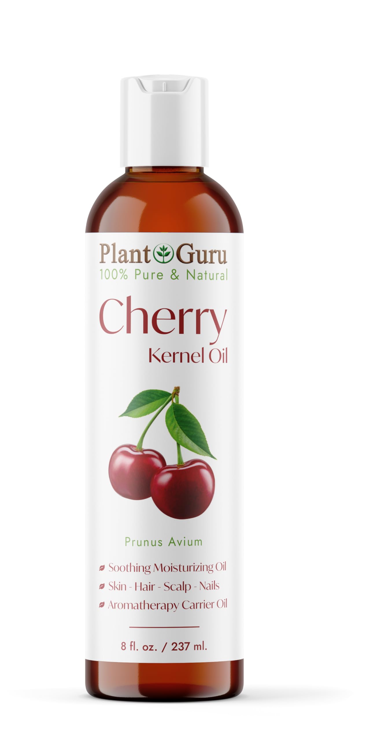 Plant Guru Cherry Kernel Oil 8 fl. oz. Cold Pressed 100% Pure & Natural Carrier Skin Face Body & Hair Growth Moisturizer. Great for DIY Creams Lotions and Lip Balms.