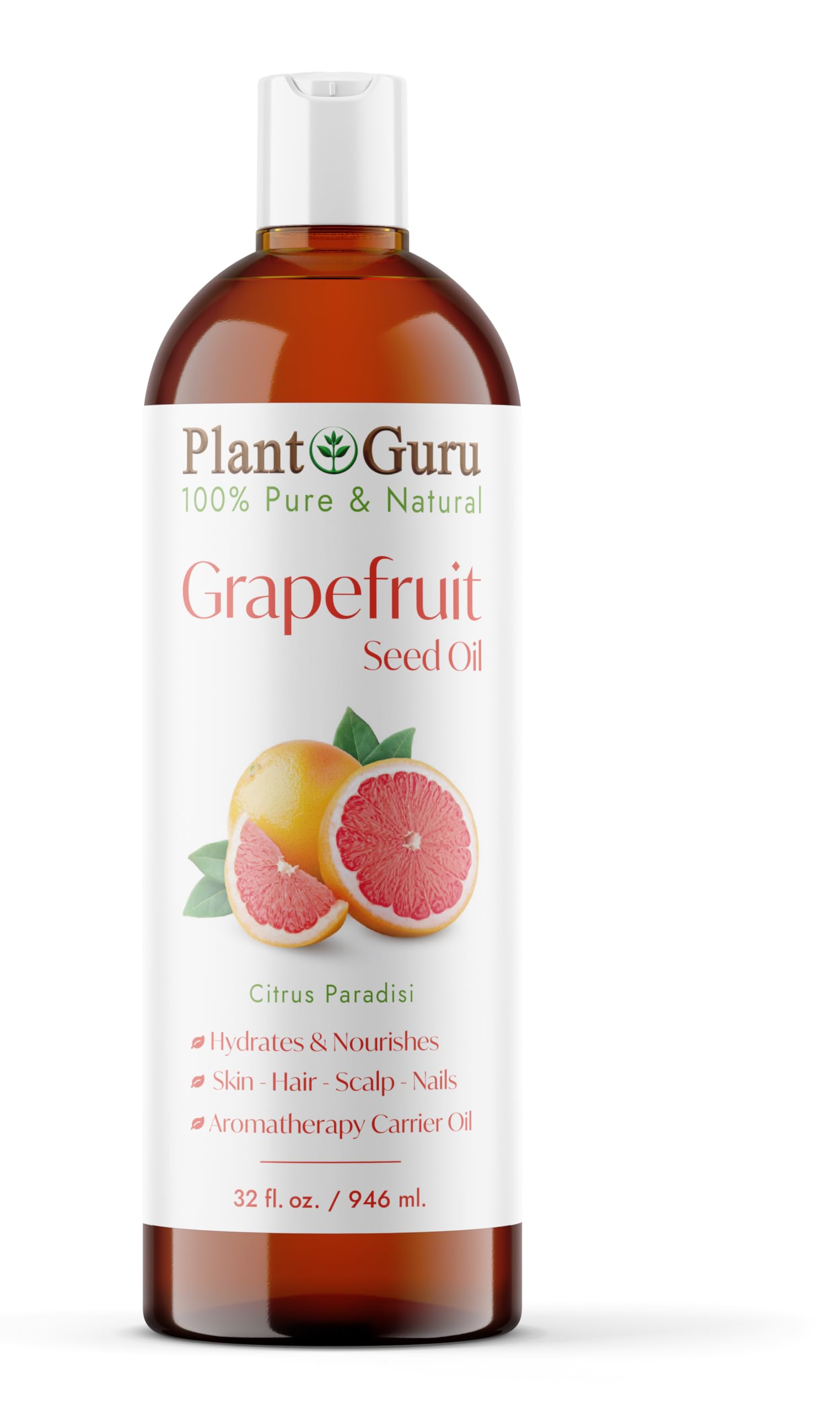 Plant Guru Grapefruit Seed Oil 32 fl. oz. Cold Pressed 100% Pure & Natural Carrier Skin Face Body & Hair Growth Moisturizer. Great for DIY Creams Lotions and Lip Balms