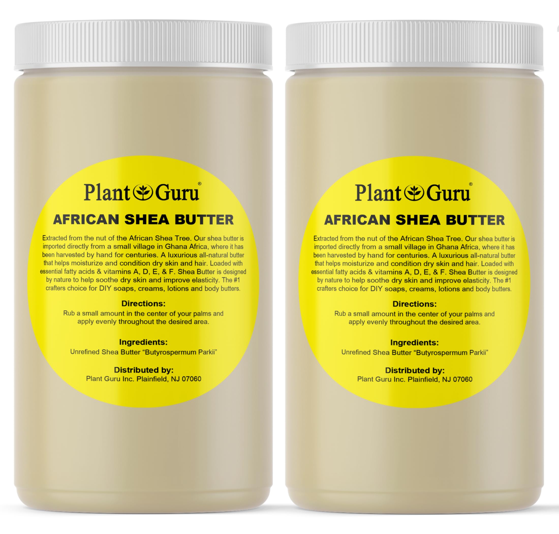 Plant Guru Raw African Shea Butter 32 oz. (2 Pack) Bulk 100% Pure Natural Unrefined IVORY - Ideal Moisturizer For Dry Skin Body Face And Hair Growth. Great For DIY Soap and Lip balm Making.