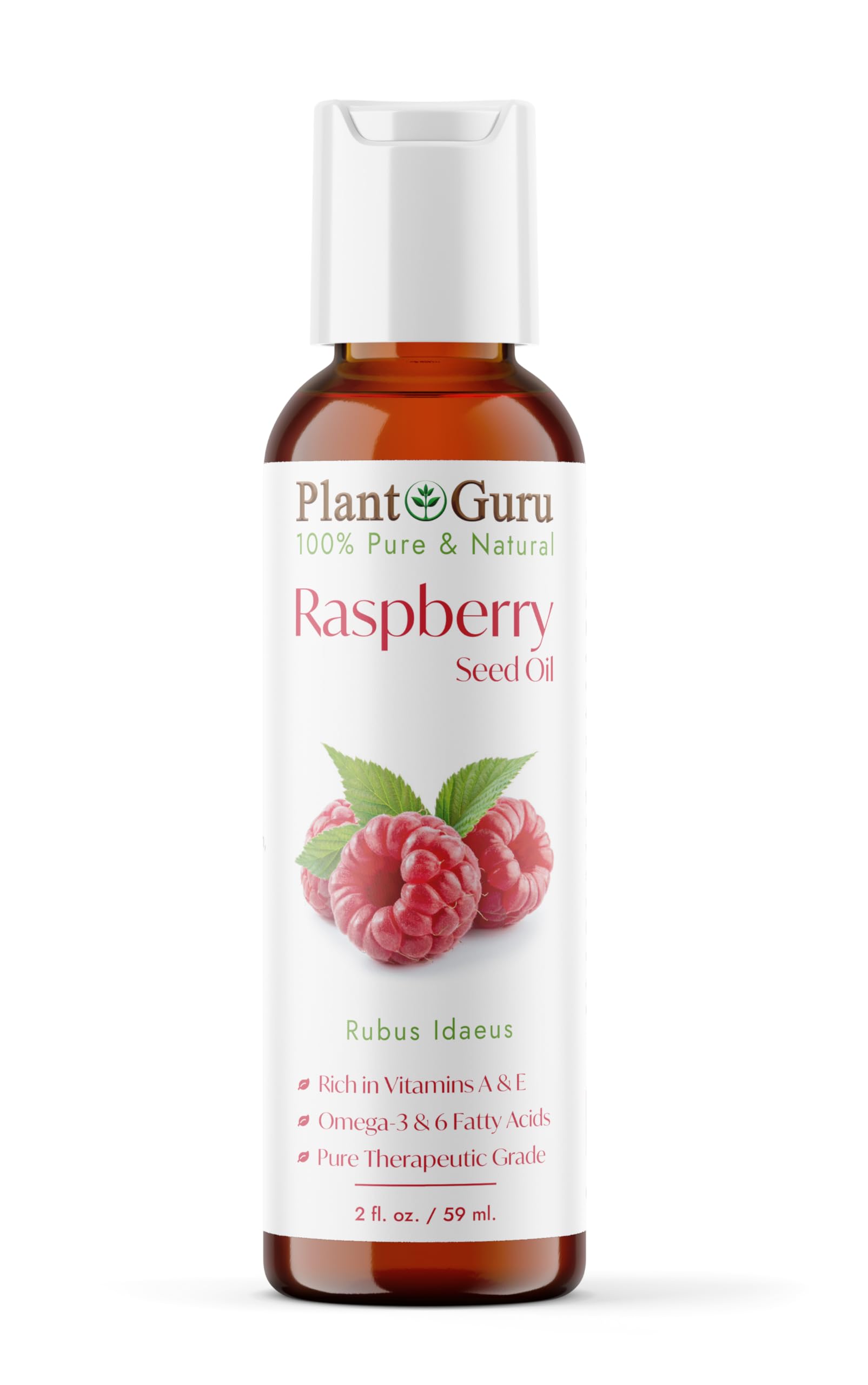 Plant Guru Red Raspberry Seed Oil 2 fl. oz. Cold Pressed Unrefined 100% Pure & Natural Carrier Ideal for Skin Face Body and Hair Moisturizer. Great for DIY Soap Creams Lotions and Lip Balms.