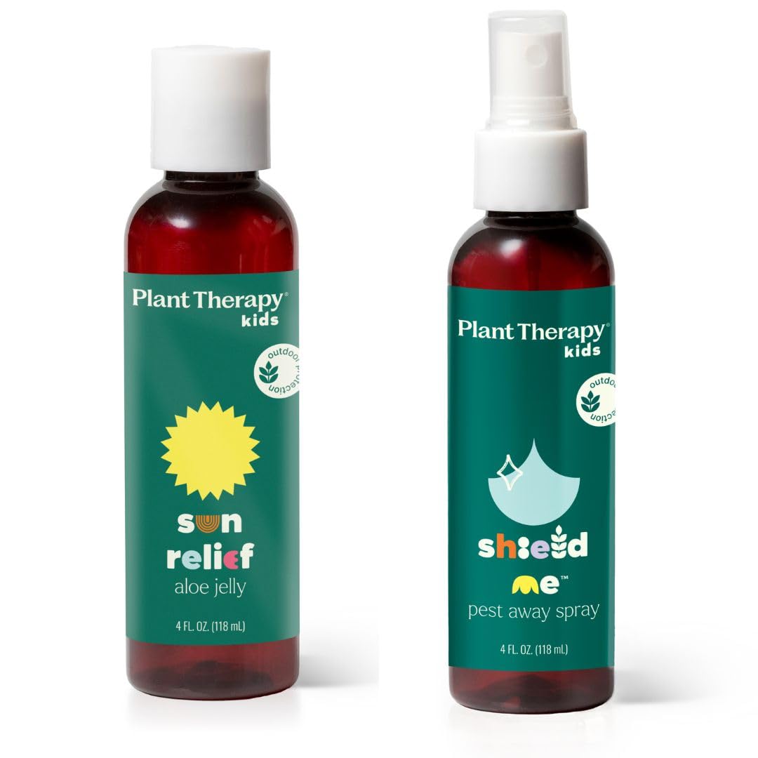 HIGH-QUALITY AFFORDABLE ESSENTIAL OILS: At Plant Therapy, our goal is to positively impact the lives of as many people as we possibly can, by selling such a high-quality product at an affordable price. Be confident knowing you are purchg quality products at direct-to-consumer prices. HYDRATES REFRESHES YOUNG SKIN: This gentle, DEET and alcohol-free formula goes beyond outdoor support by hydrating and soothing the skin with Aloe Vera, Lavender and Peppermint Hydrosols, Glycerin, and Vitamin E. It leaves behind a soft, herbal-fresh natural aroma. ENJOY OUTDOOR FUN WITH CONFIDENCE: Designed especially for children, Shield Me Spray makes outdoor adventures more comfortable. Whether you're camping, hiking, or playing in the backyard, this lightweight spray helps support outdoor enjoyment without the worry. CALMING BOTANICAL BLEND: Features Chamomile, Lavender, and Frankincense oils to ease tenderness, plus Gotu Kola, Dandelion, and Wild Geranium extracts to naturally support skin healing and recovery. GENTLE AFTER-SUN RELIEF: Aloe-based jelly helps soothe and comfort red, irritated, or overexposed skin. Specially formulated for children's delicate skin, it's a must-have for summer days, beach trips, and outdoor play.