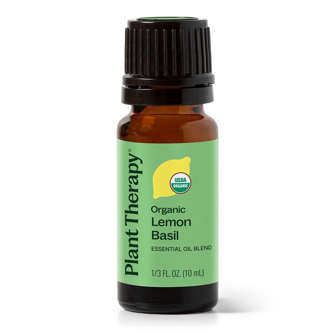 Plant Therapy Organic Lemon Basil Essential Oil Blend for Diffuser Manufactured in USA 10 mL (1/3 oz) A Mood-Boosting and Vibrant Scent Supports Focus Mental Clarity Great Shower Steam Foot Soaks