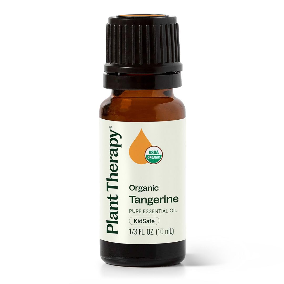 CERTIFIED AROMATHERAPISTS ON STAFF: Our customers are our 1 priority and we'd love for you to join the Plant Therapy Family. Our Certified Aromatherapists are happy to help you with all of your Essential Oil questions. In addition, we offer a risk-free 100 satisfaction guarantee!. HIGH-QUALITY AFFORDABLE ESSENTIAL OILS: Every bottle of oil from Plant Therapy goes through multiple rounds of testing including organoleptic and multiple rounds of GC-MS testing by a third-party laboratory. USDA CERTIFIED ORGANIC STEAM-DISTILLED: Made from organically grown tangerines, this pure essential oil is steam-distilled to preserve its bright aroma and therapeutic properties, delivering a clean, high-quality citrus oil you can trust. SUPPORTS DIGESTION COMFORT: When diluted in a carrier oil and applied to the abdomen, Tangerine can help soothe a queasy stomach and support healthy digestion. Use at a 2 to 4 topical dilution for best results. CALMING, MOOD-BOOSTING AROMA: Organic Tangerine Essential Oil offers a soft, sweet citrus scent that helps ease nervous tension, lift the mood, and promote emotional balance. It's also KidSafe and perfect for the whole family.