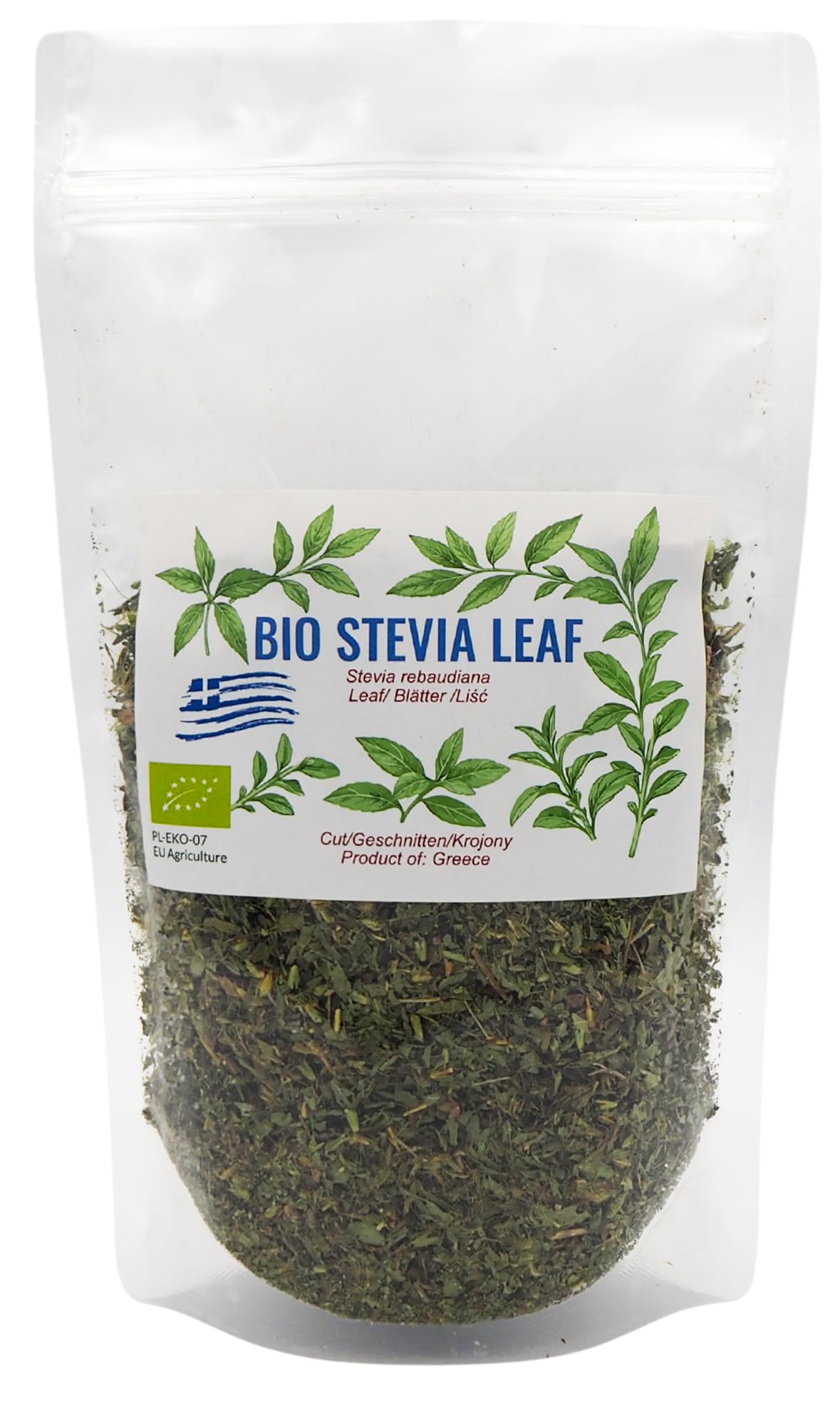Organic Stevia, Cut Leaves, 300g Stevia from certified organic farms. The cut leaves offer natural sweetness without calories and are a convenient alternative to sugar. Thanks to its stability up to 180 C, stevia is suitable for sweetening hot or cold drinks, as well as for cooking and baking. Highly concentrated and economical, a small amount is all you need. Natural product, authorized in the European Union.