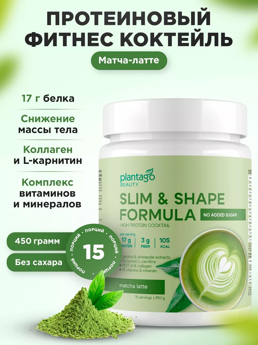 | Состав | изолят соевого белка; концентрат молочного белка; водорастворимые волокна кукурузы; коллаген гидролизованный; цитрусовые волокна; среднецепочные триглицериды жирных кислот; бета-глюкан; чай матча; ароматизаторы; L-Карнитин L-Тартрат; экстракт ананаса; витаминно-минеральный комплекс; Экстракт гарцинии; сукралоза; хлорофиллин |