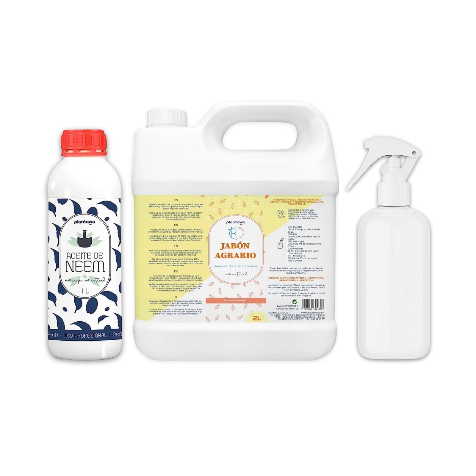 PLANTAWA Potassium Soap Saver Pack 2L + Neem Oil 1L + Powder 100% Natural Orchard Protection Durable High Concentration Whitefly Red Spider Aphid Mealybug