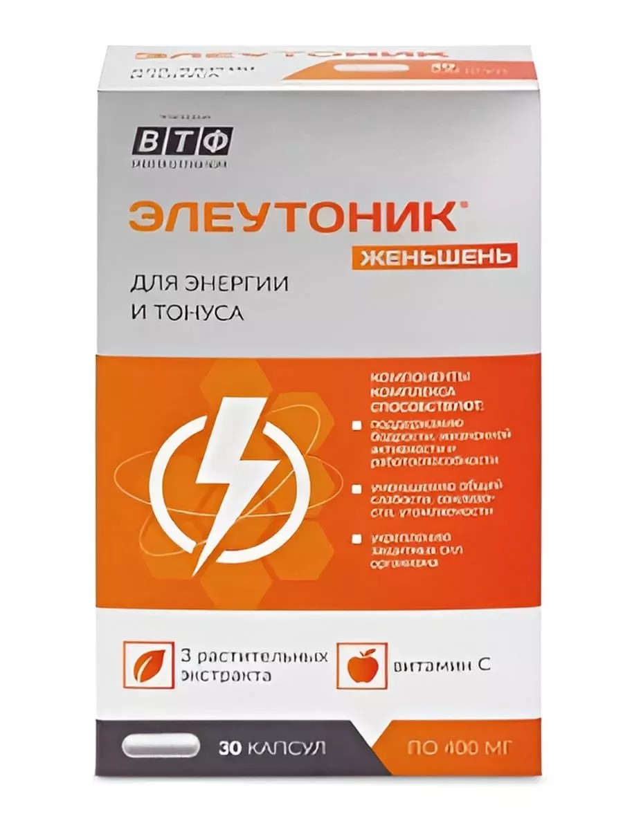 | Состав | носитель: микрокристаллическая целлюлоза; экстракт корней элеутерококка; капсула желатиновая (желатин; краситель: диоксид титана); кислота аскорбиновая; экстракт листьев зеленого чая, экстракт корня женьшеня; антислёживающие агенты: диоксид кремния аморфный; магниевая соль стеариновой кислоты (магния стеарат), тальк |