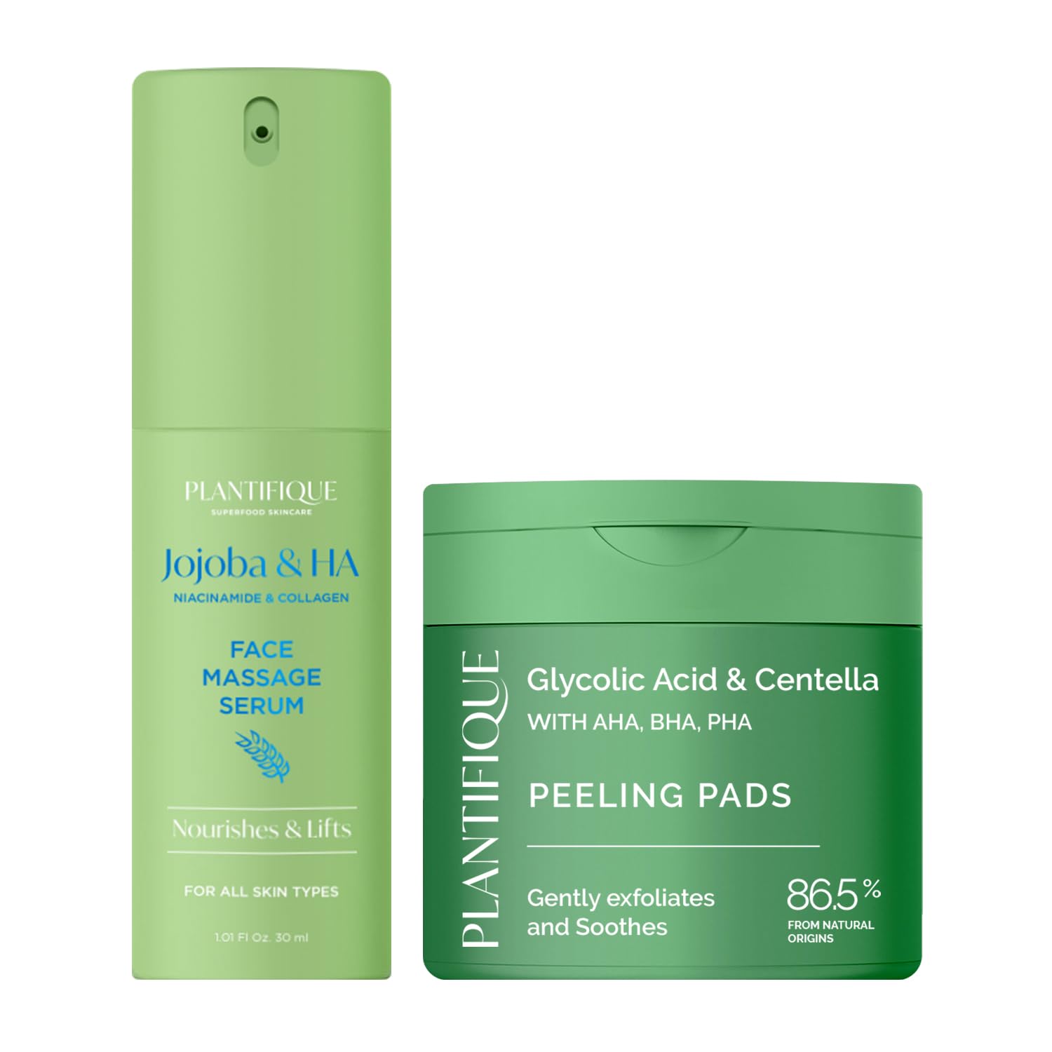SOOTHING BENEFITS OF CICA: Enriched with Centella Asiatica, Tea Tree Oil, Niacinamide, and Hyaluronic Acid, these pads soothe irritation, maintain moisture balance, and ensure optimal hydration, even for sensitive and acne-prone skin. GENTLE MULTI-ACID EXFOLIATION: Thanks to a combination of Glycolic Acid, Betaine Salicylate, Salicylic Acid, and Niacinamide, these pads gently remove dead skin cells, cleanse impurities, and minimize the appearance of pores without drying out the skin. ANTI-SPOT BRIGHTENING: Reduces dark circles and dark spots, evens skin tone, and brightens the complexion with its brightening properties and vitamin C. POWERFUL ANTI-AGING: Niacinamide and collagen reduce wrinkles and fine lines, improving elasticity and providing a radiant complexion. Use with Gua Sha for greater effectiveness. DEEP HYDRATION: Oil serum enriched with jojoba oil and hyaluronic acid for intense hydration and supple skin all day long.BIENFAITS APAISANTS DE LA CICA : Enrichis en Centella Asiatica, Huile d'Arbre à Thé, Niacinamide et Acide Hyaluronique, ces disques calment les irritations, maintiennent l'équilibre hydrique et garantissent une hydratation optimale, même pour les peaux sensibles et sujettes à l'acné. EXFOLIATION DOUCE AUX MULTI-ACIDES : Grâce à une combinaison d'Acide Glycolique, de Salicylate de Bétaine, d'Acide Salicylique et de Niacinamide, ces disques éliminent en douceur les cellules mortes de la peau, nettoient les impuretés et réduisent l'apparence des pores sans dessécher la peau. ANTI-TACHE ÉCLAIRCISSANT : Réduit cernes et taches brunes, unifie le teint et illumine la peau grâce à ses propriétés éclaircissantes et vitamine C. ANTI-ÂGE PUISSANT : Niacinamide et collagène réduisent rides et lignes fines, améliorant l'élasticité et offrant un teint radieux. Utilisez avec Gua Sha pour plus d'efficacité. HYDRATATION PROFONDE : Sérum huile enrichi en jojoba oil et acide hyaluronique pour une hydratation intense et une peau souple toute la journée.PLANTIFIQUE Serum Visage Jojoba Bio Oil - Gua Sha Huile Massage Hydratant et Anti Rides Puissant - 30 ml Disques Coréens - Tous Types de Peaux - 60 Pièces