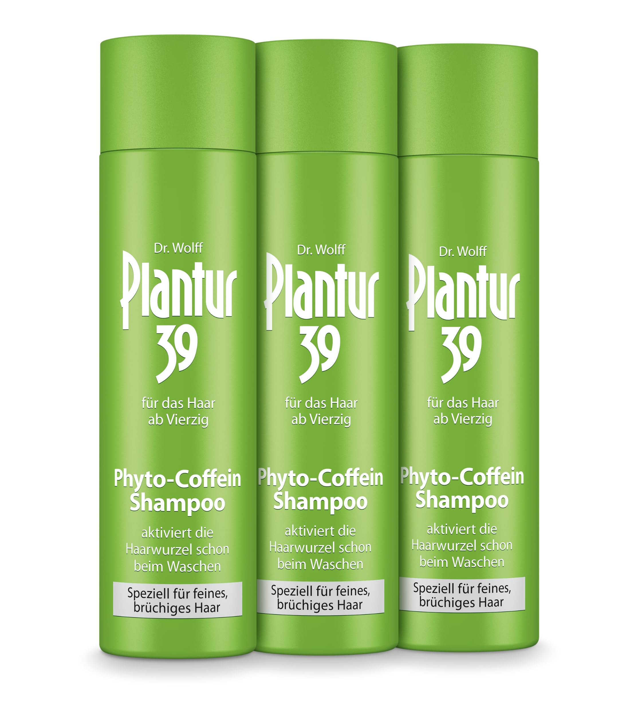Plantur 39 Phyto-Caffeine Shampoo is specially formulated for fine and brittle hair. Prevent menopausal hair loss with a superior phyto-caffeine complex – it's possible with Plantur 39 Phyto-Caffeine Shampoo. DIRECTIONS FOR USE Apply: Leave on the scalp for 2 minutes, then rinse thoroughly.