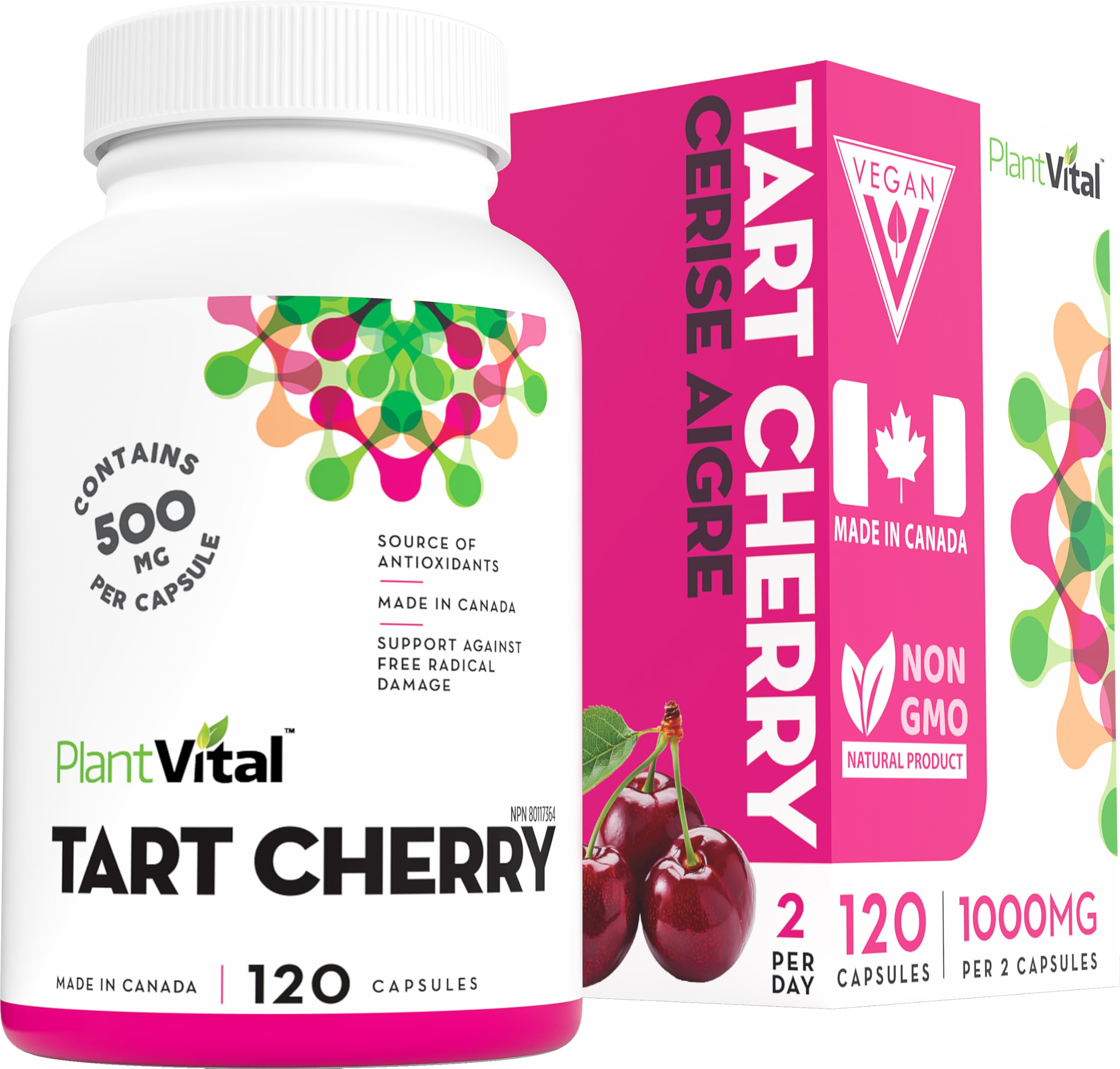 PlantVital Tart Cherry Capsules -1 000mg (two capsules) Per Day -10:1 Cherry Extract - Montmorency Tart Cherry Supplement for Antioxidants - Made in Canada - 2 Months Supply -120 Capsules 120 count (Pack of 1)