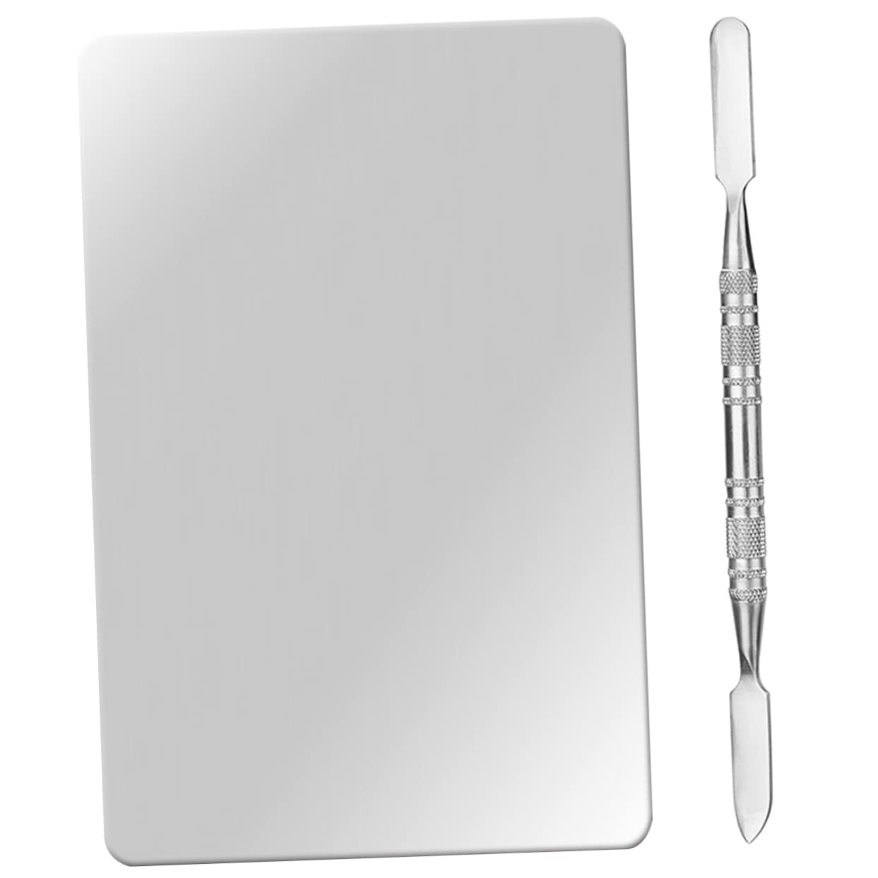 Package List: 1 x Color Mixing Plate, 1 x Spatula Features: - Color: Silver spatula plate - Size: 11.50 x 7.60 x 0.50 cm 4.52 x 2.99 x 0.20 inches - Material: Stainless steel makeup mixing palette - Suitable for cosmetics you can use it according to your own color and texture preferences. - Comfortable to the touch, sturdy and durable not easy to deform or break. - This versatile plate and spatula set is specially designed for nail art, foundation, and makeup mixing. - The makeup plate is designed for mixing colors, and the spatula is convenient for blending and applying makeup. - This foundation mixing spatula is perfect for fashion makeup enthusiasts, professional makeup artists, and makeup learners. : Makeup Mixing Tray. It is perfect for amateur and professional nail artists for DIY nail art. Makeup Mixing Palette. Furthermore, it is ideal for mixing foundation, pigments, lip colors, etc. Makeup Mixing Tray with Spatula. The makeup tray is a suitable size and lightweight for easy handling.