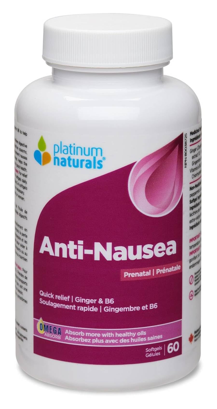 Platinum Naturals Prenatal Anti-Nausea, 60 Softgels, provides relief from nausea during pregnancy while supporting maternal health, in compliance with 's rules, policies, and guidelines.
