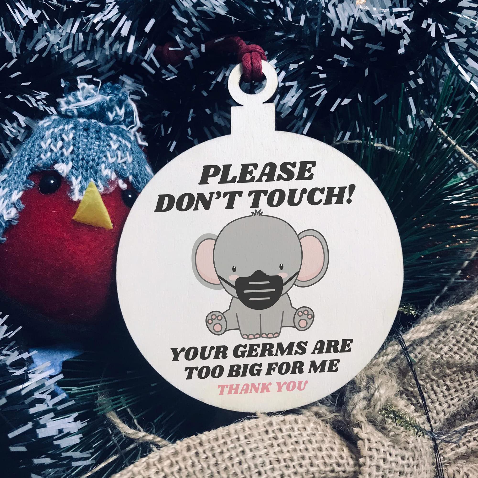 RED OCEAN Please Don't Touch Your Germs Are Too Big For Me Hanging Pram Tag Elephant Mask