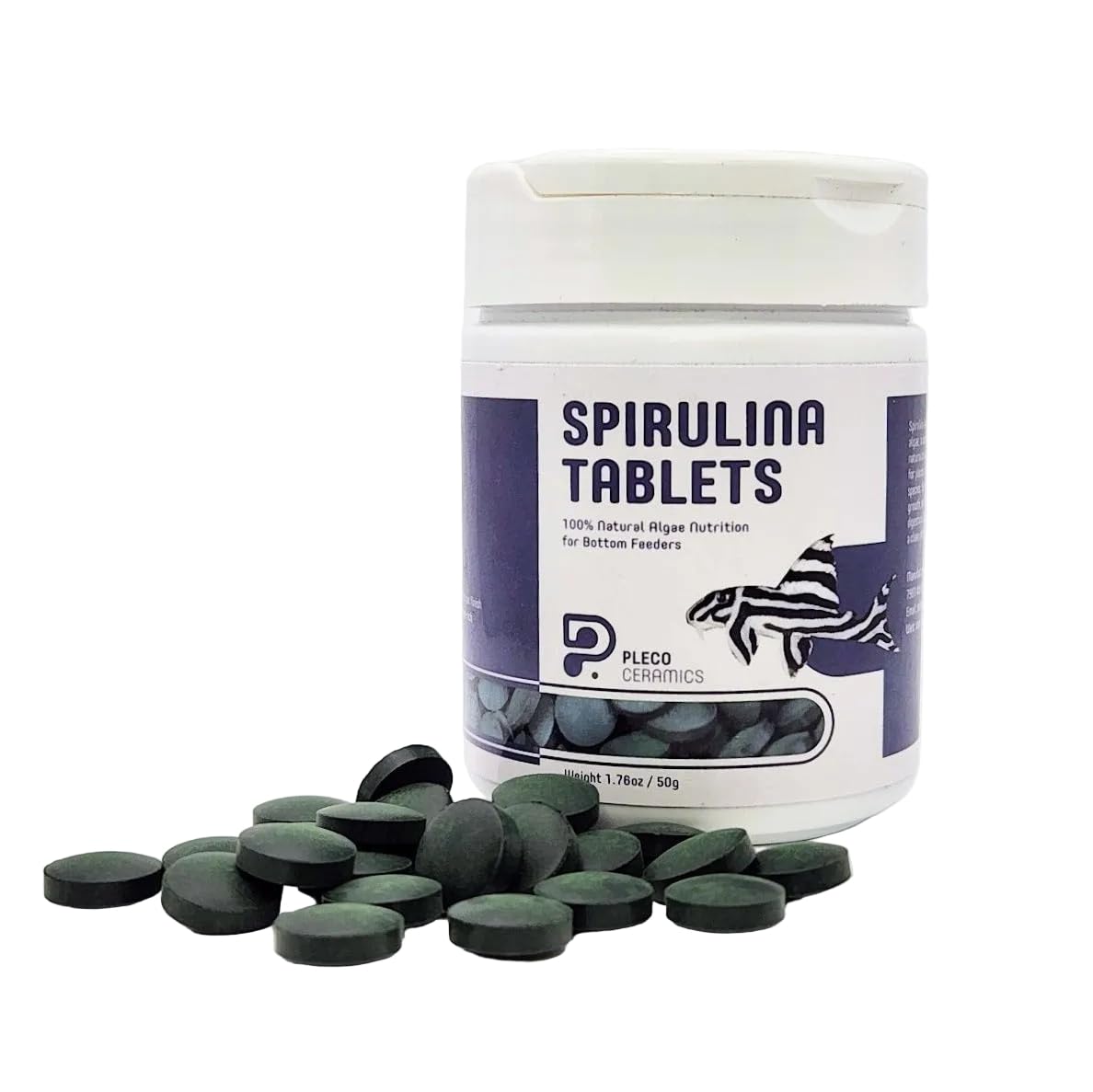 Plecoceramics 100% Spirulina Tablets Sinking Algae Fish Food for Plecos Ancistrus & Herbivorous Bottom Feeders Plant-Based Nutrition for Digestion Color & Immunity (1.76 oz / 50 g)