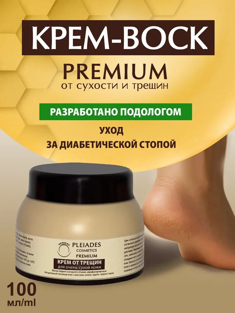 Увлажняющий крем от Pleiades cosmetics для всех типов кожи - это уникальная композиция натуральных масел и витаминов. Крем-воск разработан практикующим специалистом в области подологии. ТУ 20.42-001-2031416715-2024. Натуральный пчелиный воск в составе средства эффективно заживляет даже самые болезненные и глубокие трещины, смягчает пятки, увлажняет и питает, делая вашу кожу мягкой и нежной, как после процедуры педикюра. Иновационный продукт от натоптышей, мозолей, трещин и шелушений, который станет незаменимым помощником в сохранении вашей естественной красоты.
