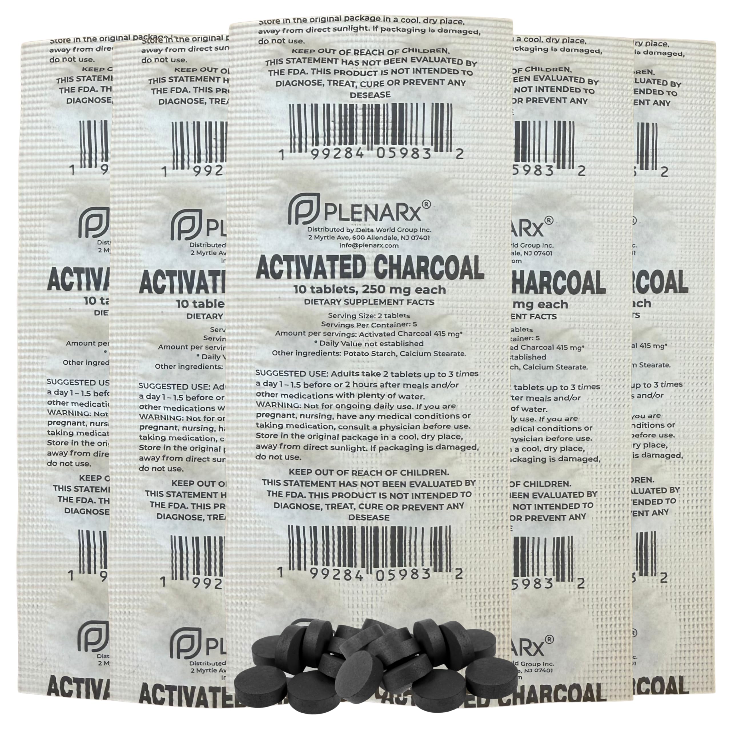 PLENARX Activated Charcoal Dietary Supplement Pills Easy to Swallow Individually Packed in Blisters Helps Occasional Gas & Bloating Detox Support Pack of 5