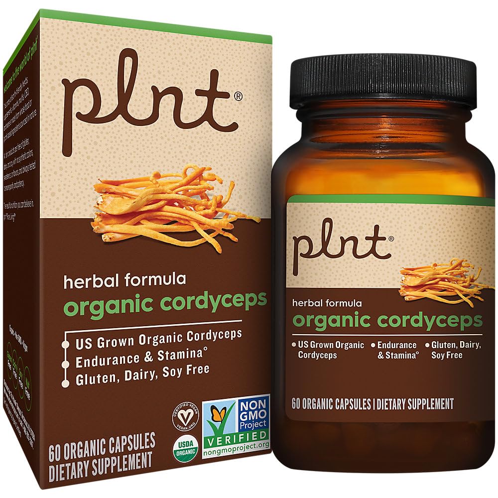 plnt Organic Cordyceps - Mushroom Herbal Formula to Support Endurance & Stamina (60 Organic Capsules)